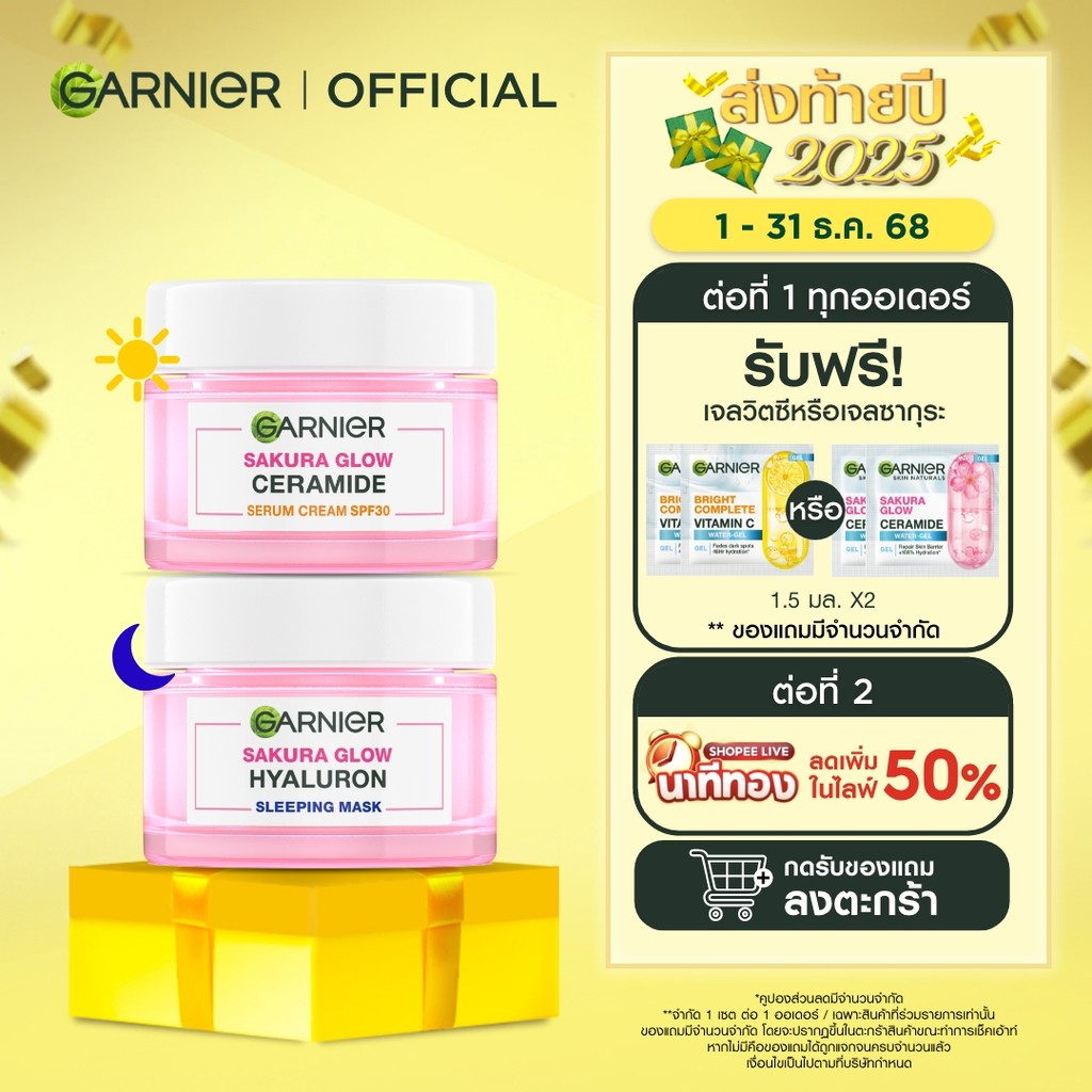 การ์นิเย่ เซต ซากุระ โกลว์ พิงค์คิช โกลว์ เดย์ครีม 50มล+สลิปปิ้งมาส์ก ไนท์ครีม 50มล ครีมหน้าใส ครีมบำรุงผิวครีมบำรุงหน้า