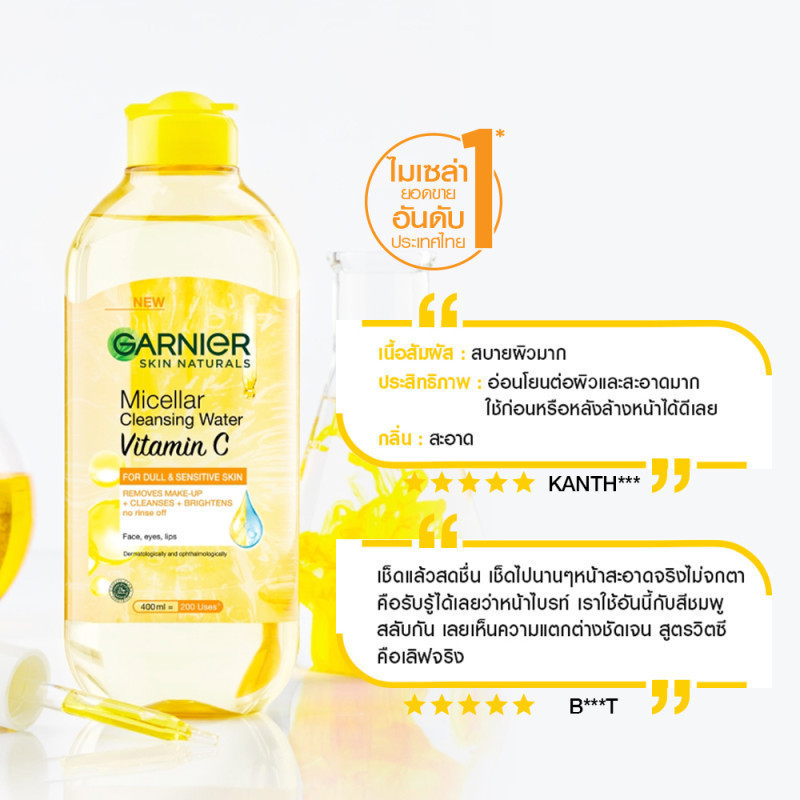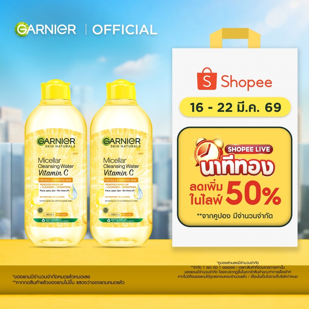 การ์นิเย่ ไมเซล่า คลีนซิ่ง วอเตอร์ วิตามินซี 400มลx2 GARNIER MICELLAR VITAMIN C CLEANSING WATER 400MLx2 ล้างเครื่องสำอา