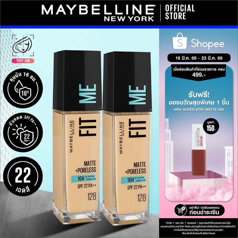 [แพ็กคู่] MAYBELLINE FIT ME MATTE & PORELESS LIQUID FOUNDATION เมย์เบลลีน รองพื้นคุมมัน ฟิต มี แมท แอนด์ พอร์เลส