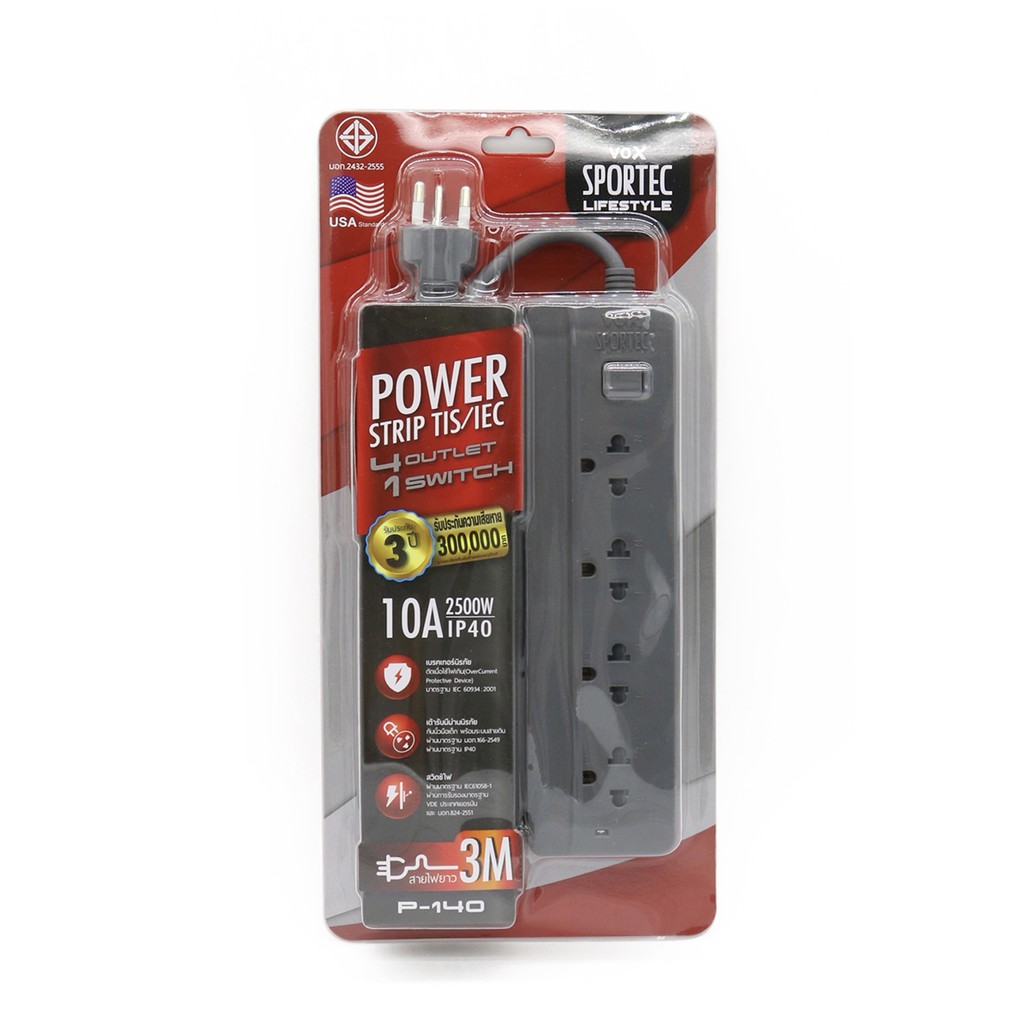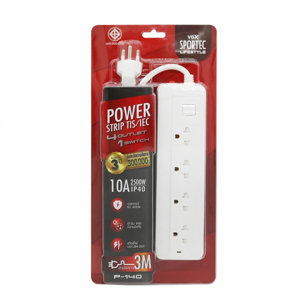 VOX ปลั๊กไฟ 4ช่อง 1 สวิตซ์ มาตรฐาน มอก. รุ่น P140 ความยาว 3เมตร