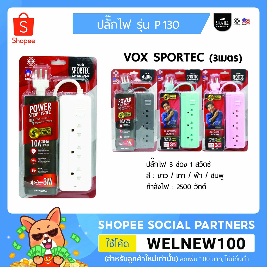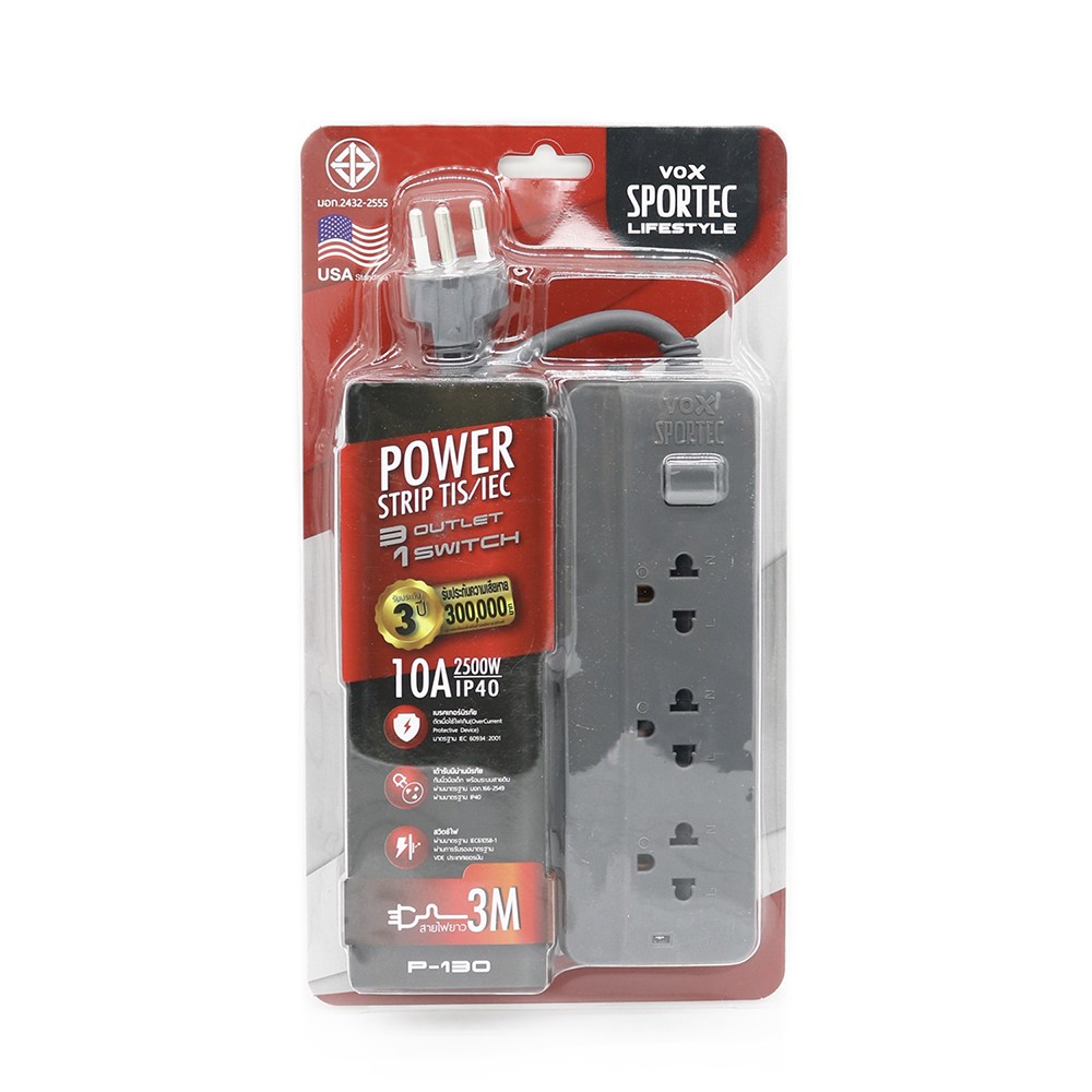 VOX ปลั๊กไฟ 3ช่อง 1สวิตซ์ มาตรฐาน มอก. (3 เมตร) รุ่น P130