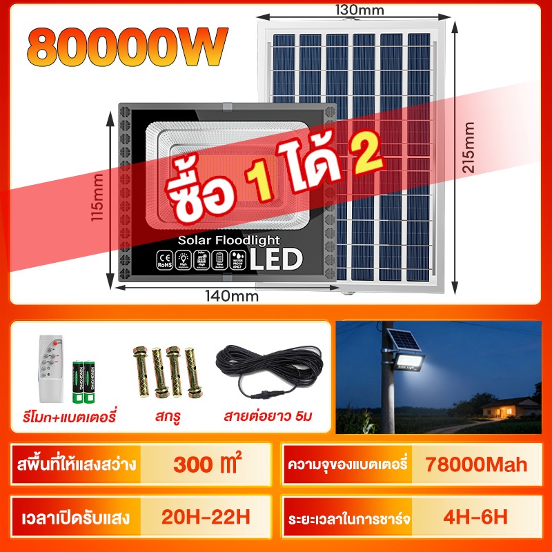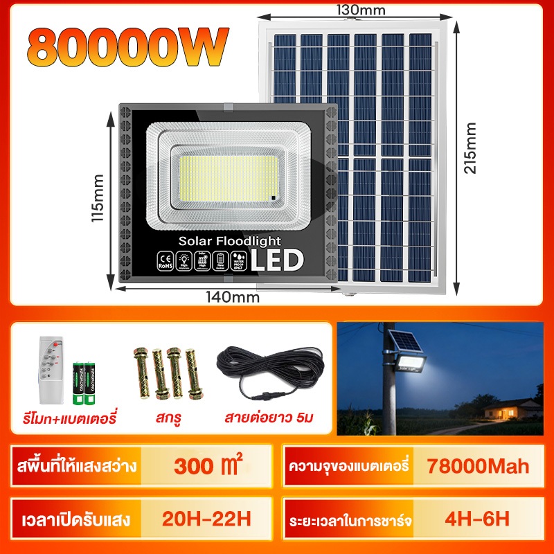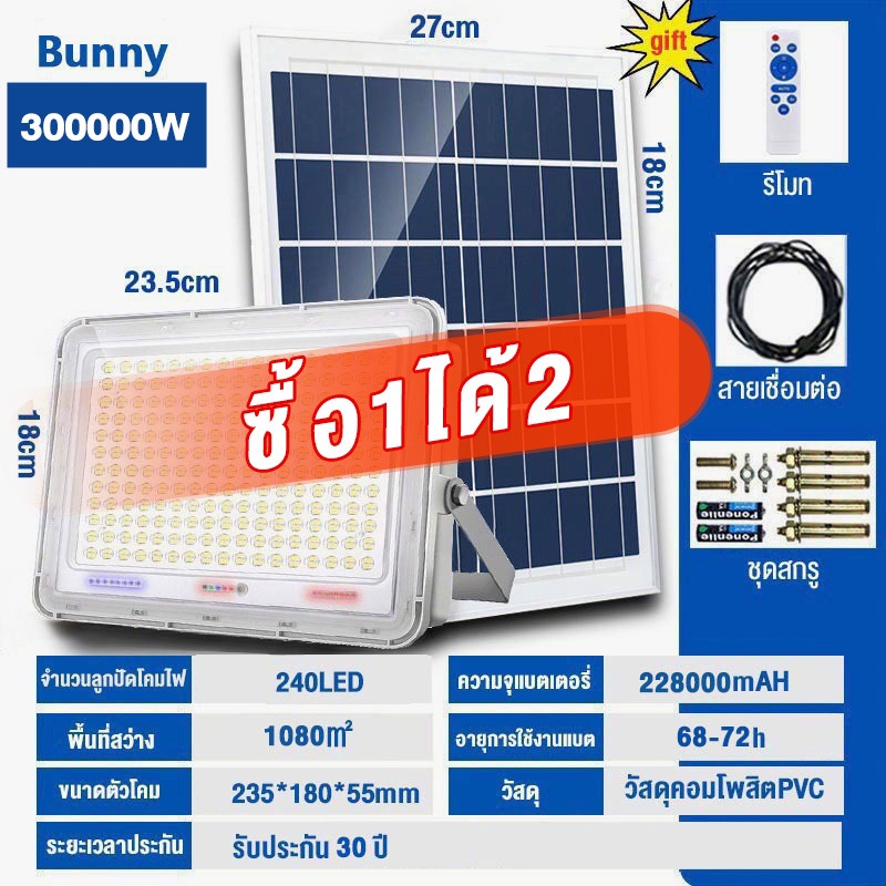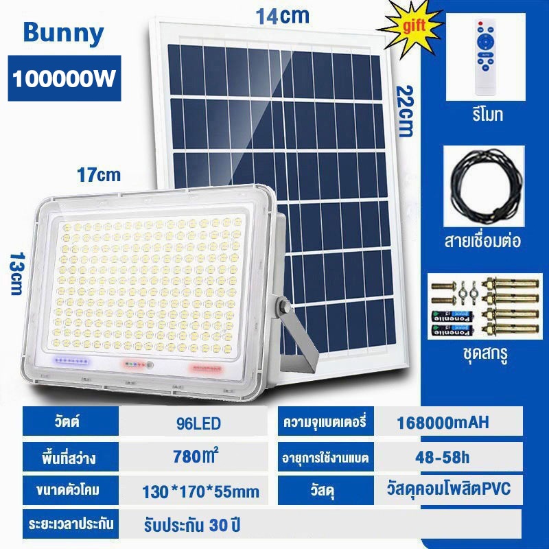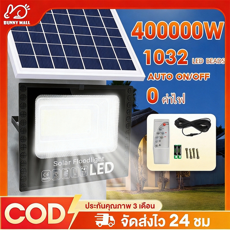 Bunny 【รับประกัน30ปี】 ไฟโซล่าเซลล์ 500000W สว่างอัตโนมัติเมื่อฟ้ามืด กันน้ำ ป้องกันฟ้าผ่า solar lights LED รีโมทคอนโทรล