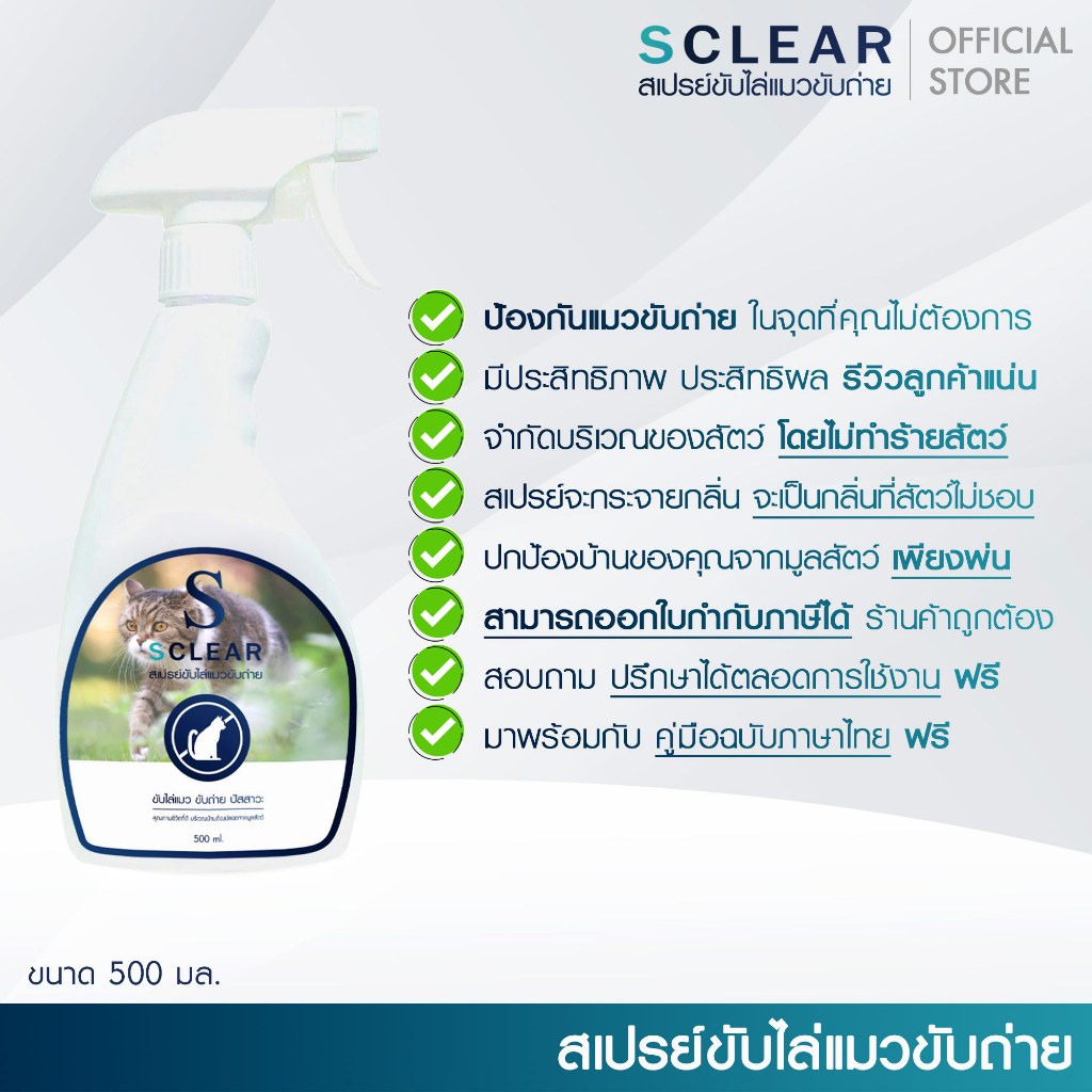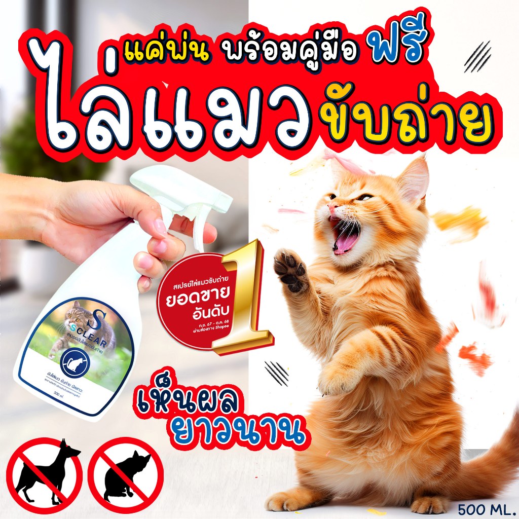 ไล่แมว SClear สเปรย์ไล่แมว ขับถ่าย สูตรเข้มข้น ไร้สารเคมี 500 มล. ยอดขายอันดับ 1 ไล่แมวฉี่ ส่งไว