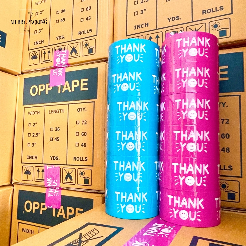 (1แพ็ค/6ม้วน) เทป Thank you 2 นิ้ว 45 หลา 45 ไมครอน เทปปิดกล่อง สำหรับขอบคุณ