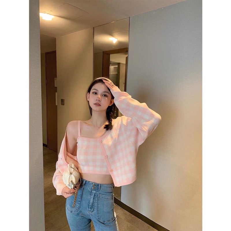 [ใส่โค้ด DOUBLEX8 ลดทันที 15%] 📟﹆🧤 Gin set 📟﹆🧤 เซ็ตเสื้อกล้าม+คาร์ดิแกน