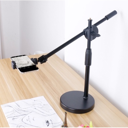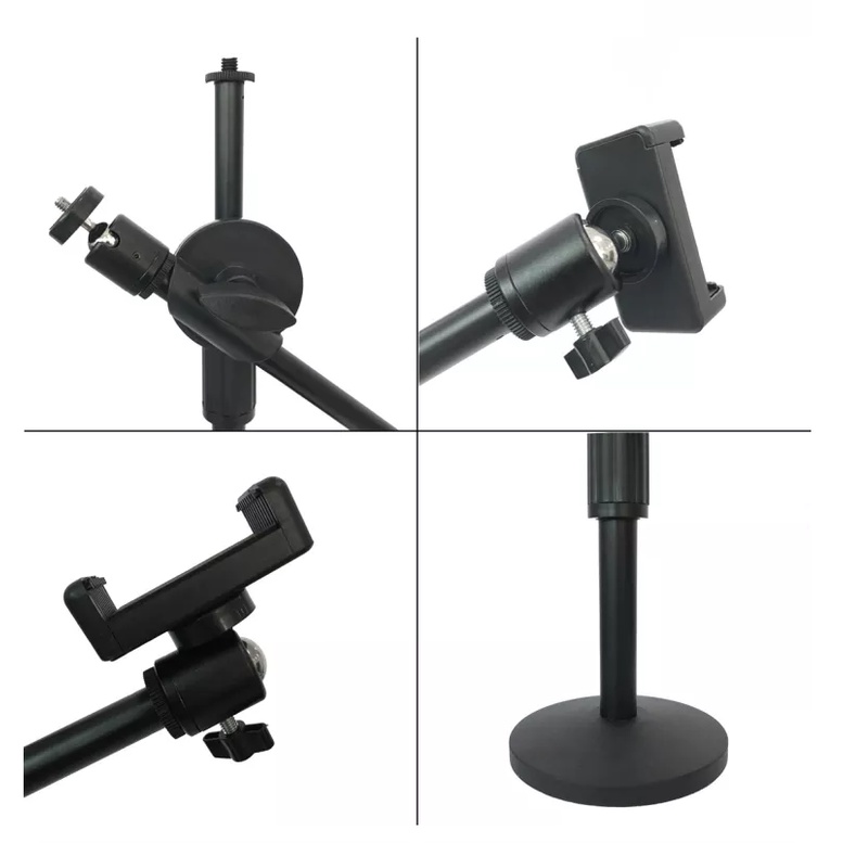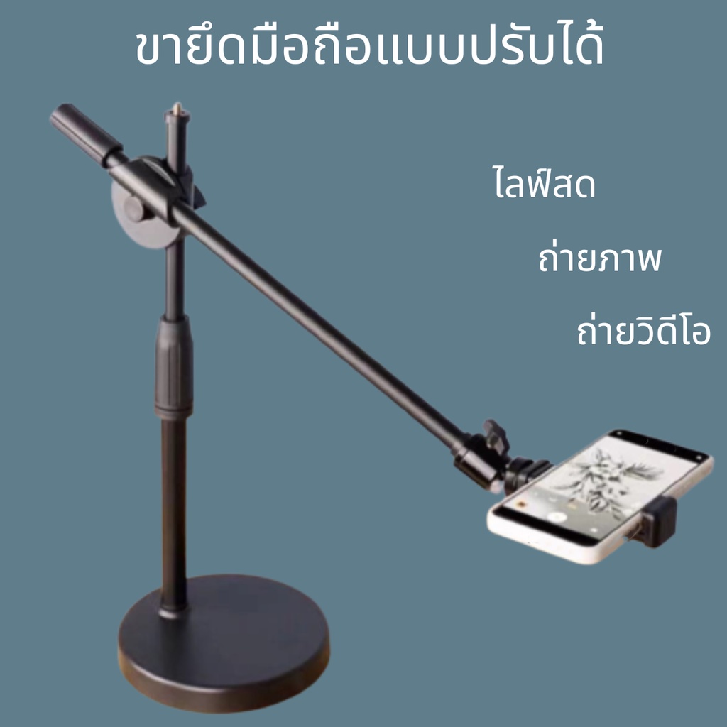 ขาตั้งเดสก์ท็อปแบบปรับได้พร้อมขายึดที่วางโทรศัพท์แขนบูม 360 องศาหมุนขาตั้งถ่ายภาพ