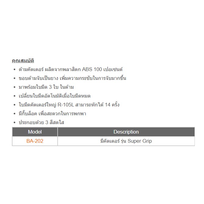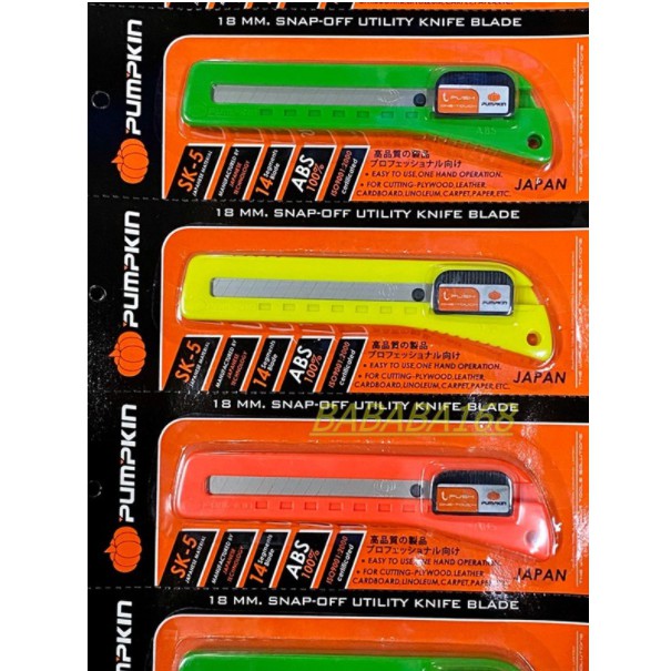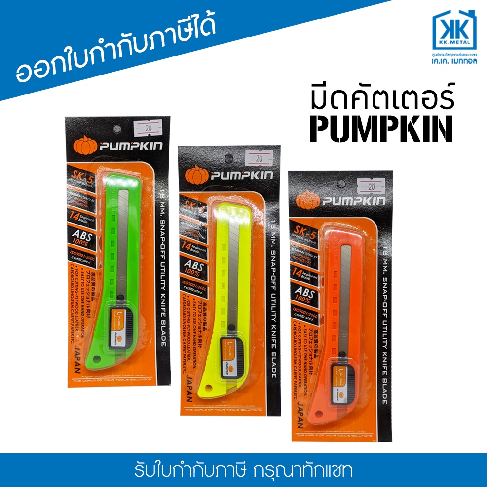 มีดคัตเตอร์ Pumpkin ด้ามพลาสติก ใบมีดสแตนเลส คละสี