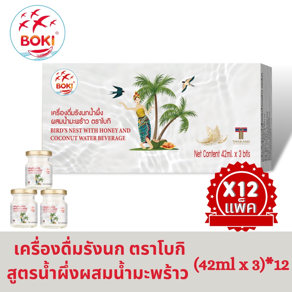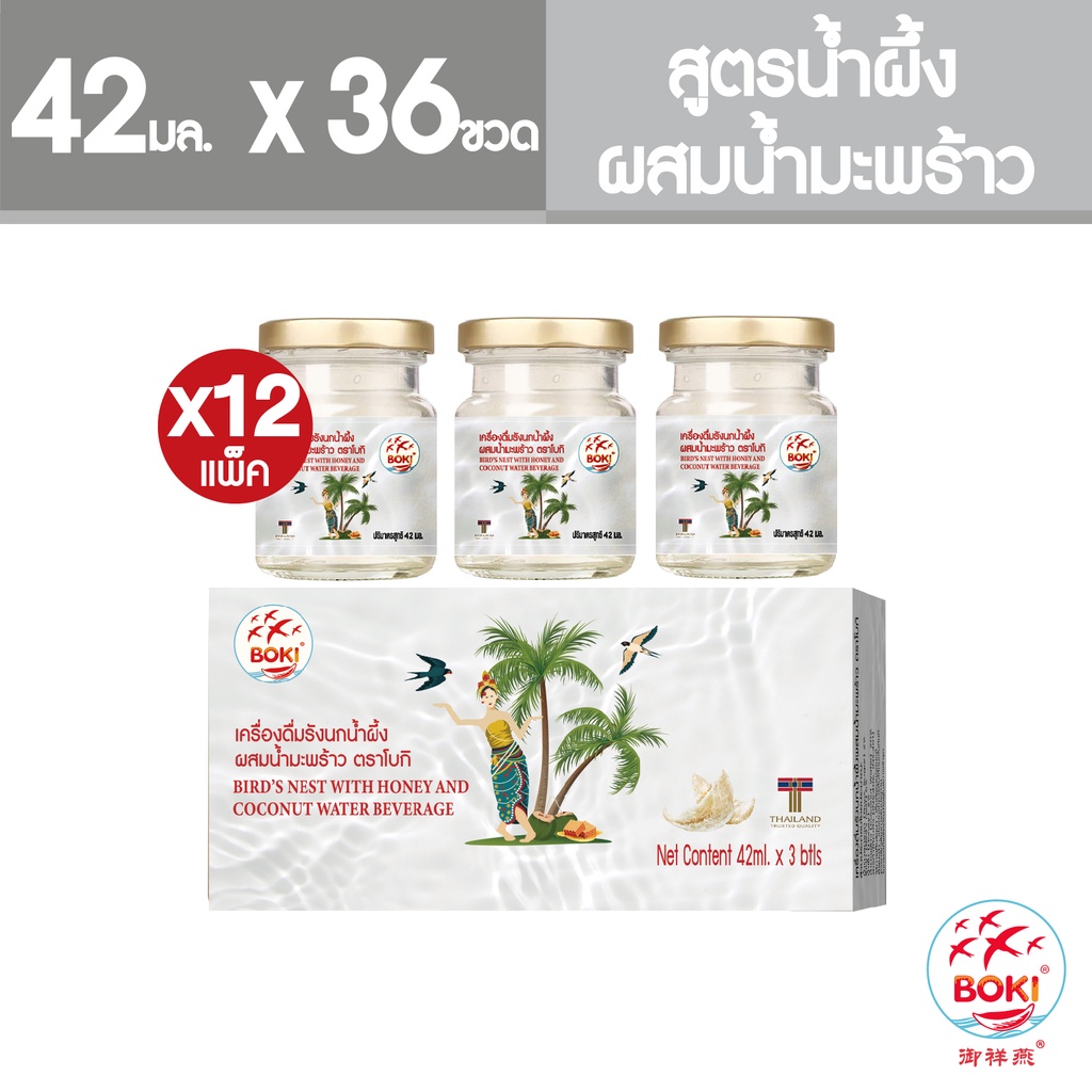BOKI เครื่องดื่มรังนกน้ำผึ้งผสมน้ำมะพร้าว ตราโบกิ (42ml x 3) 12 กล่อง Bird's Nest With Honey and Coconut Water Beverage