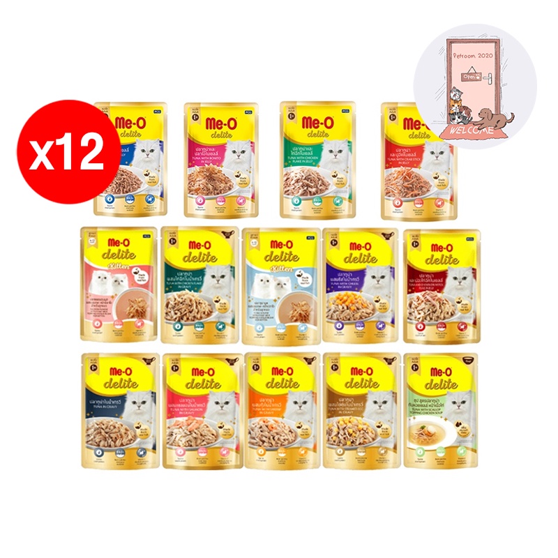 (ยกโหล) Me-o delite อาหารเปียก มีโอ ดีไลท์แบบซอง 70 กรัม (โหล 12 ซอง)