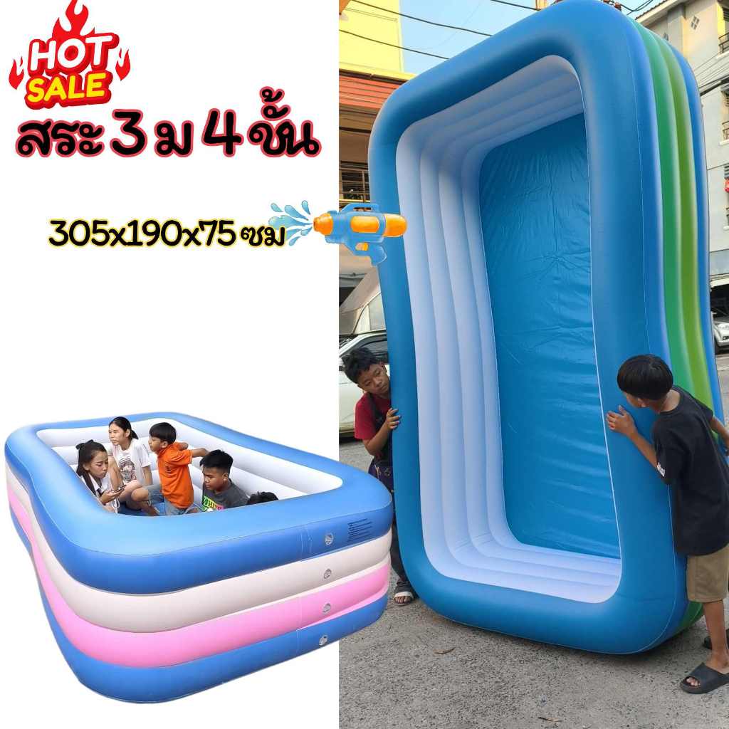 สระน้ำเป่าลมขนาดใหญ่3เมตร 4ชั้น 💦💥พร้อมส่ง💥💦ขนาด305×183×75CMสระว่ายน้ำ พร้อมส่ง สูงพิเศษ 2ม. /ส สระน้ำเป่าลม