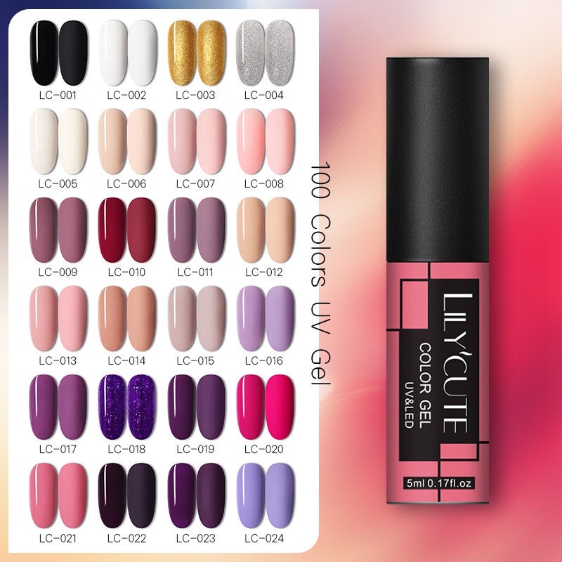 LILYCUTE ยาทาเล็บเจล สีแดง สีชมพู หลากสี 5 มล. สําหรับตกแต่งเล็บยูวีเจล