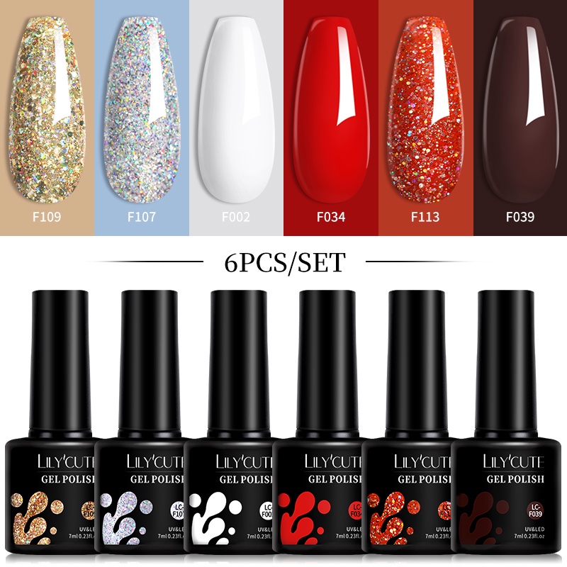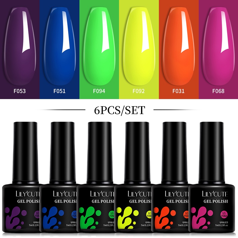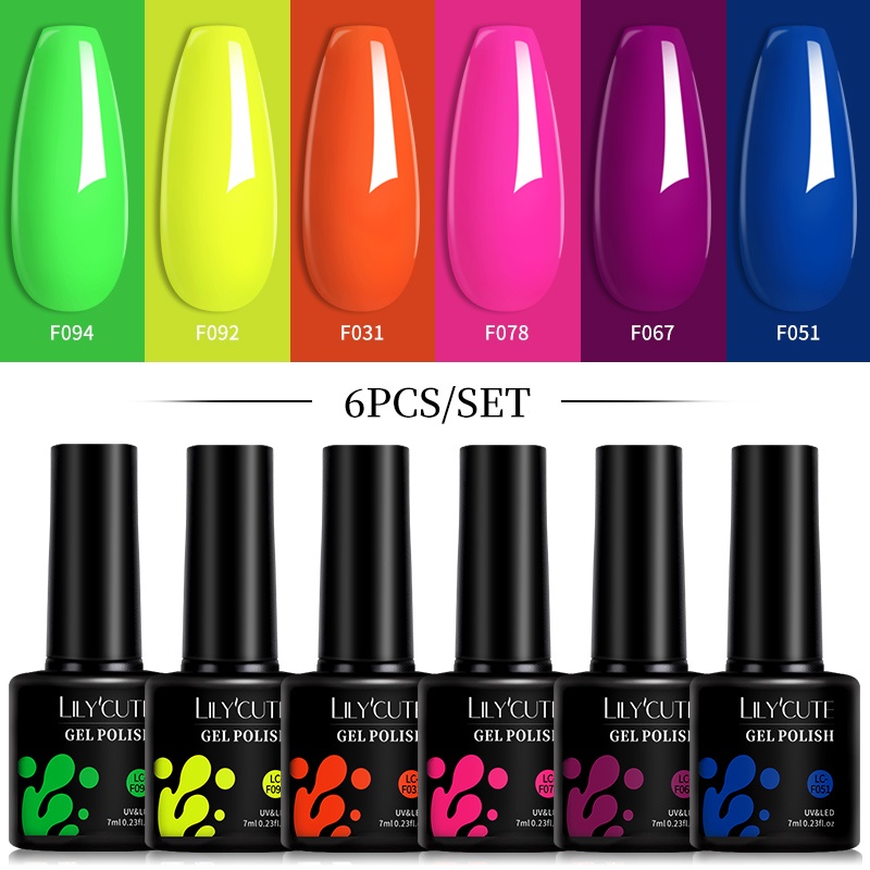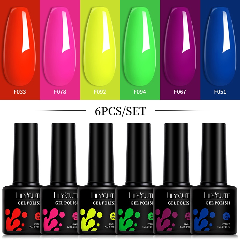 Lilycute สีเจลนีออน ชุดยาทาเล็บเจล นีออน เรืองแสง UV Led ยาทาเล็บเรืองแสง 10 ชิ้น / ชุด
