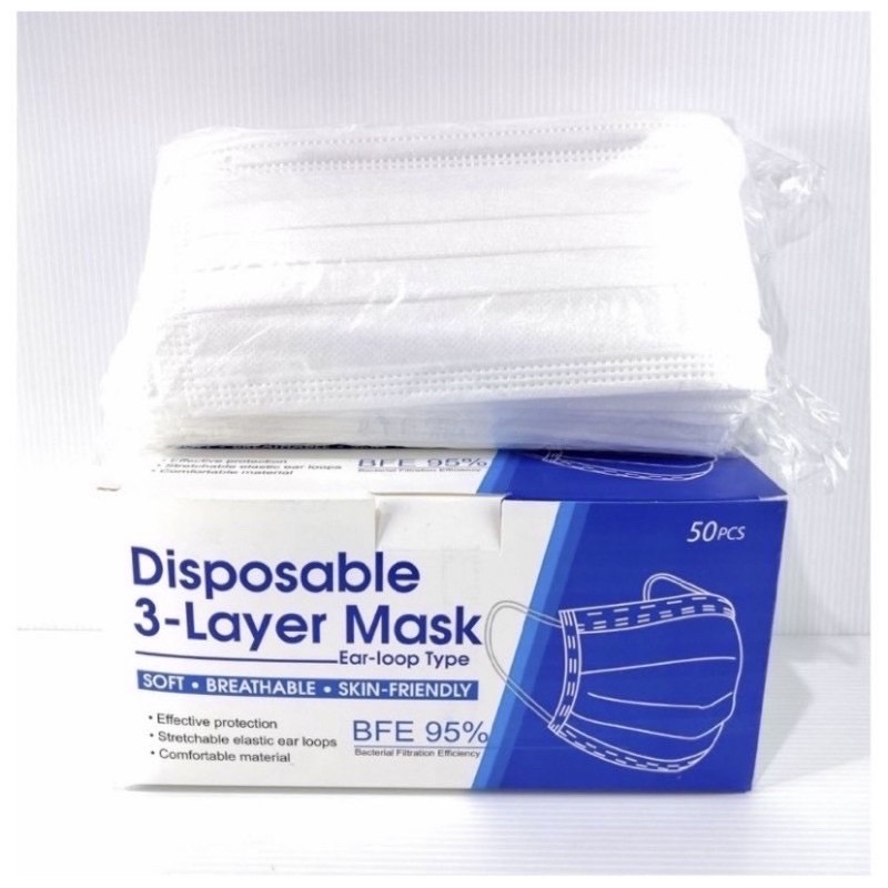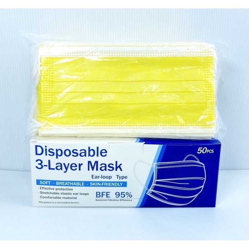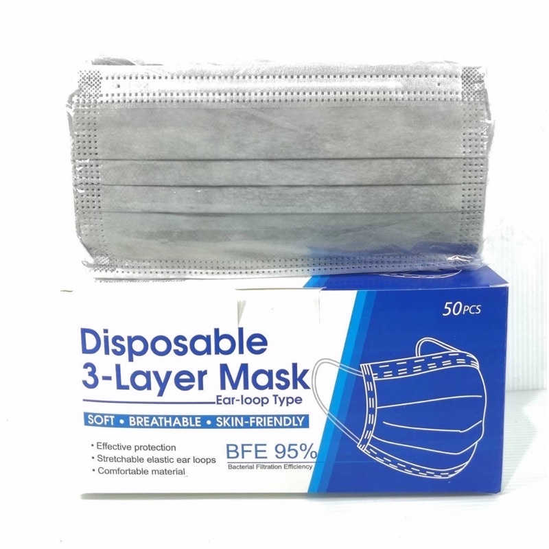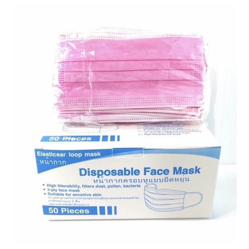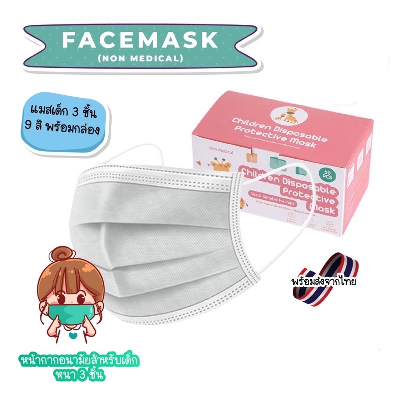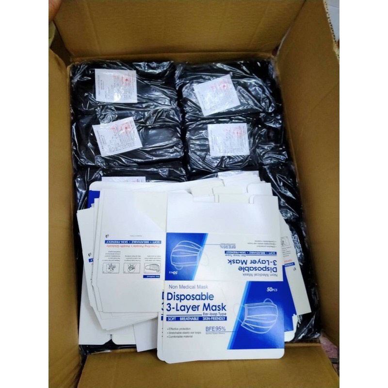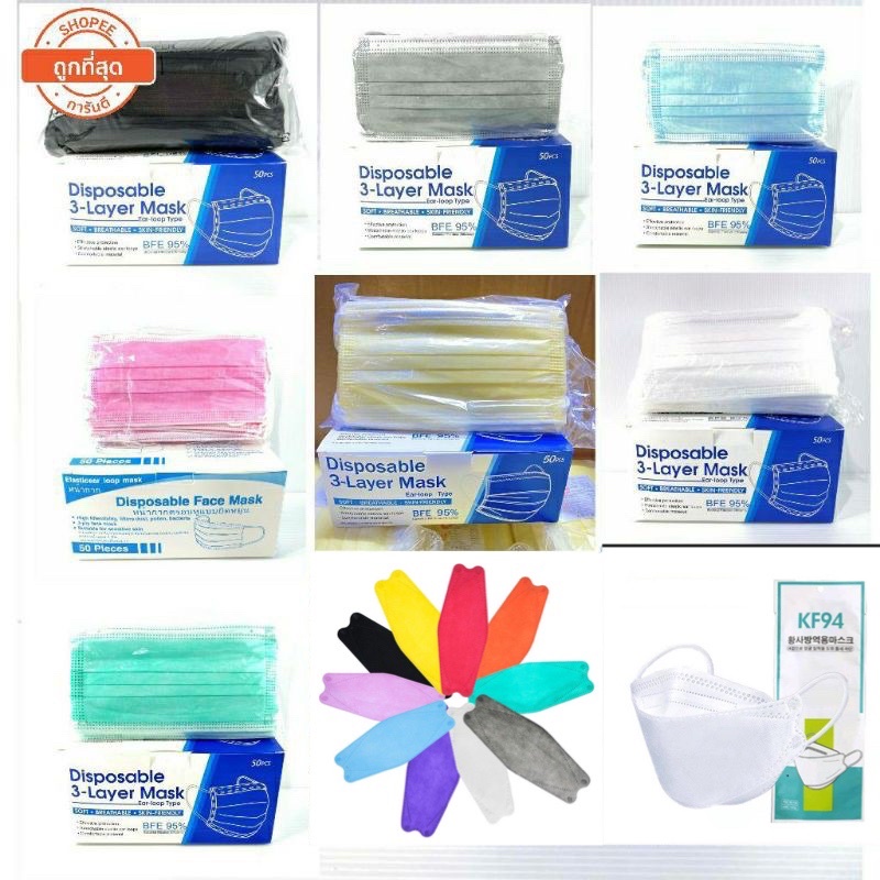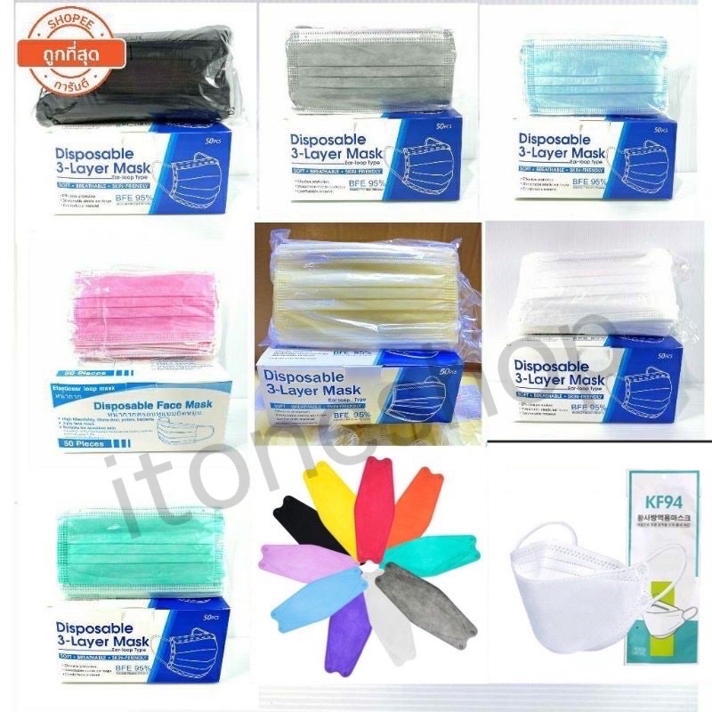 1กล่อง50ชิ้น หนา3ชั้น ฟ้า ดำ พร้อมส่งในไทย