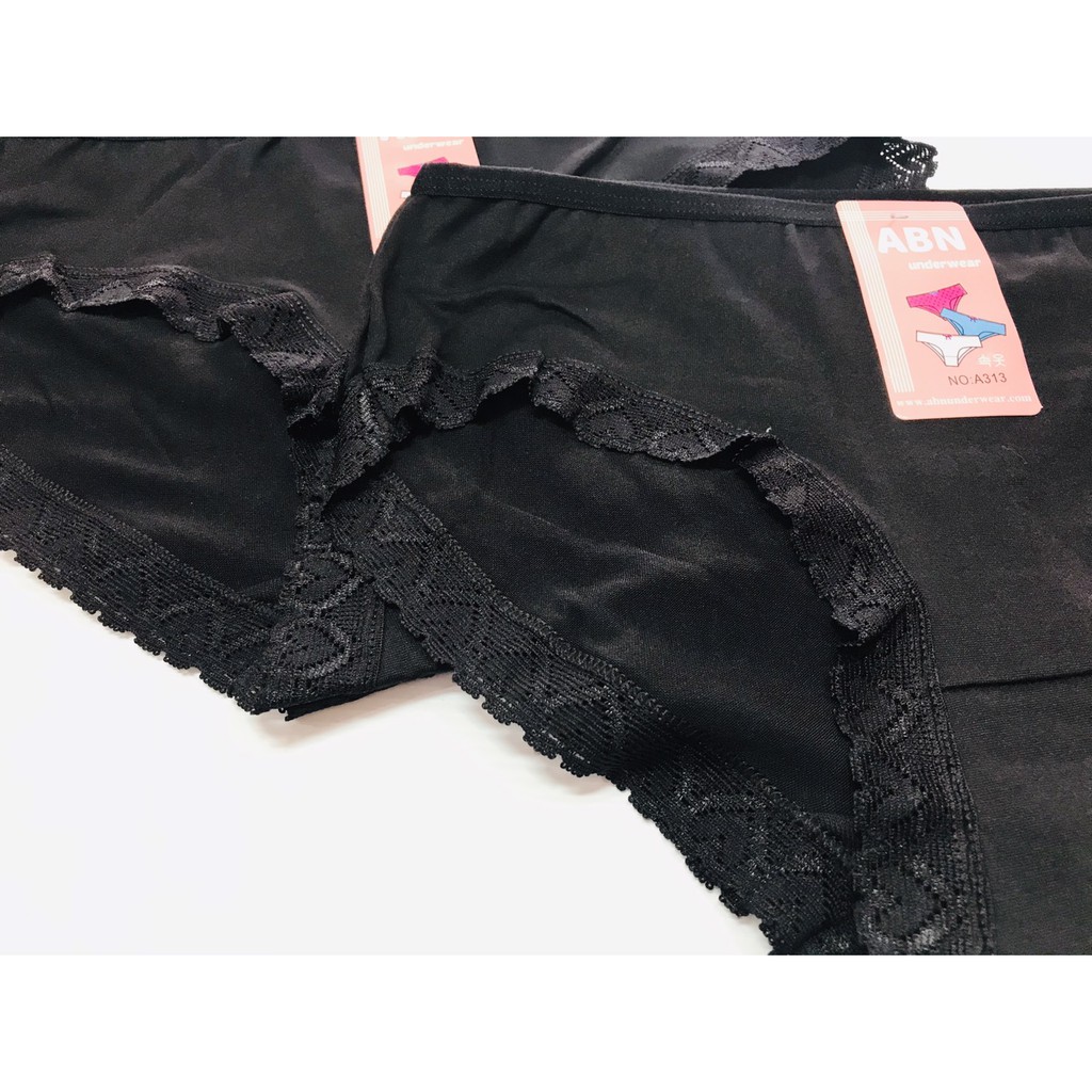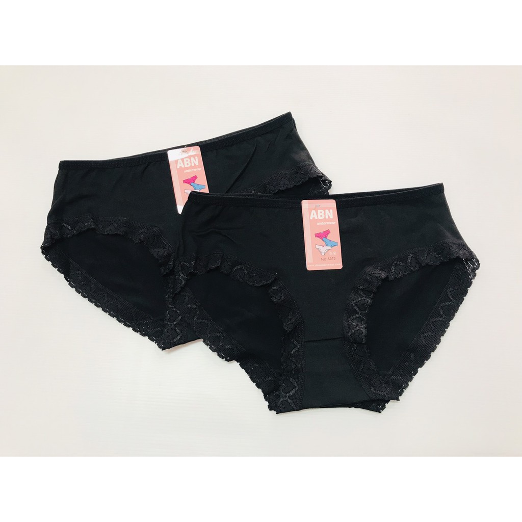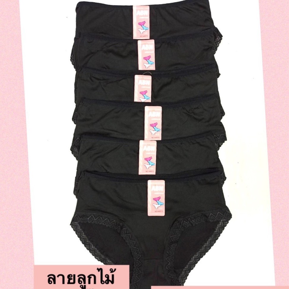 กางเกงใน กางเกงในสีดำ ไซส์ M, L, XL รุ่นขอบหัวใจ (ขอบขา) ขอบระบาย ดำล้วน สีพื้น No.513 ป้าย Abn
