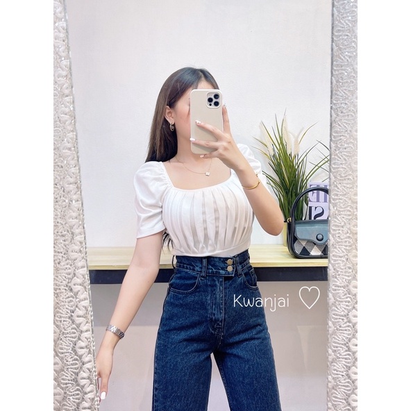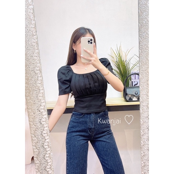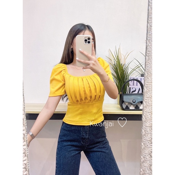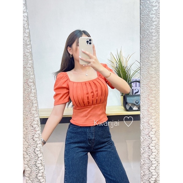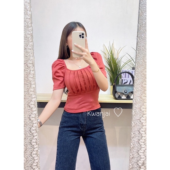 🔸Kwanjai🔸เสื้อยืดแขนสั้นทรงผู้ดีมาก จับจีบหน้าอก ทรงสวย
