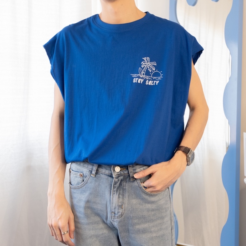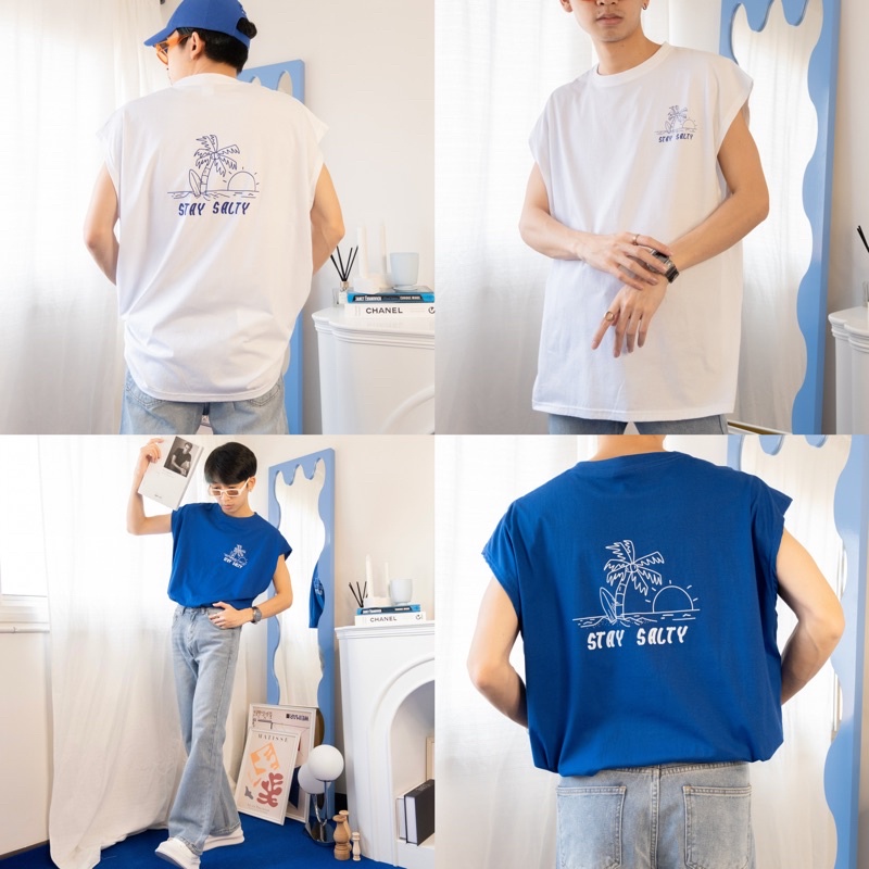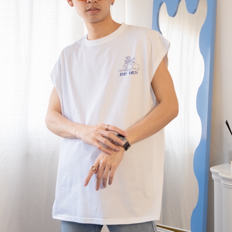 STAY SALTY T-shirt เสื้อแขนกุดทรงโอเวอร์ไซส์