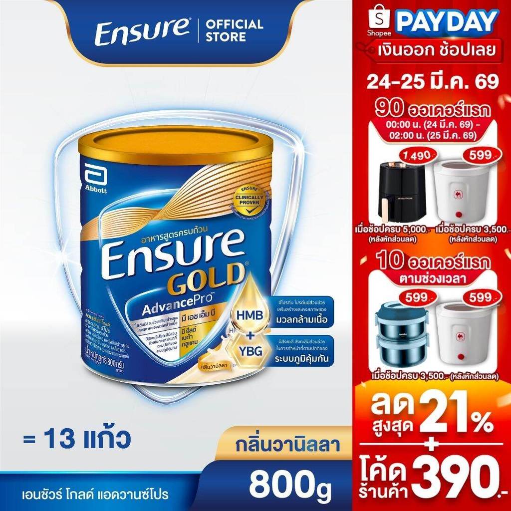 [AWO][ส่งฟรี] เอนชัวร์ โกลด์ แอดวานซ์โปร กลิ่นวานิลลา 800กรัม 1 กระป๋อง Ensure Gold AdvancePro Vanilla 800g x1