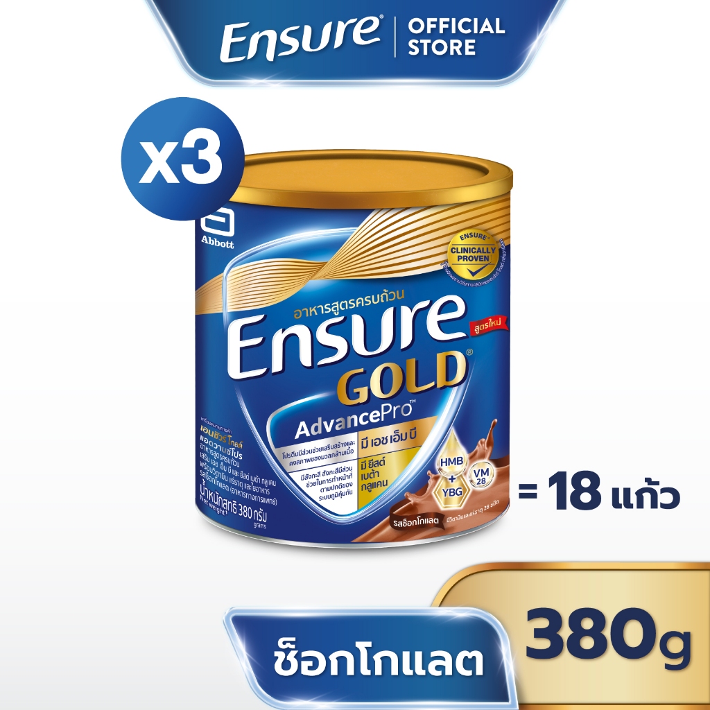 [ส่งฟรี] เอนชัวร์ โกลด์ แอดวานซ์โปร รสช็อกโกแลต 380g 3 กระป๋อง Ensure Gold AdvancePro Chocolate 380g x3