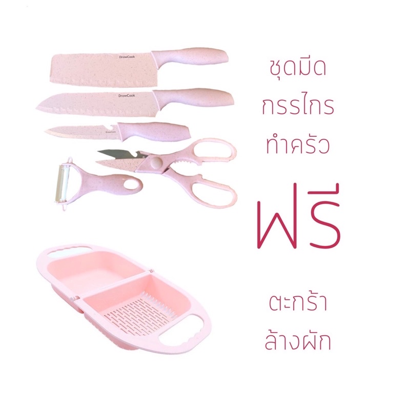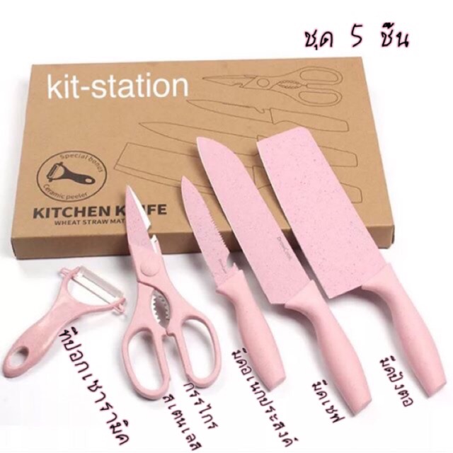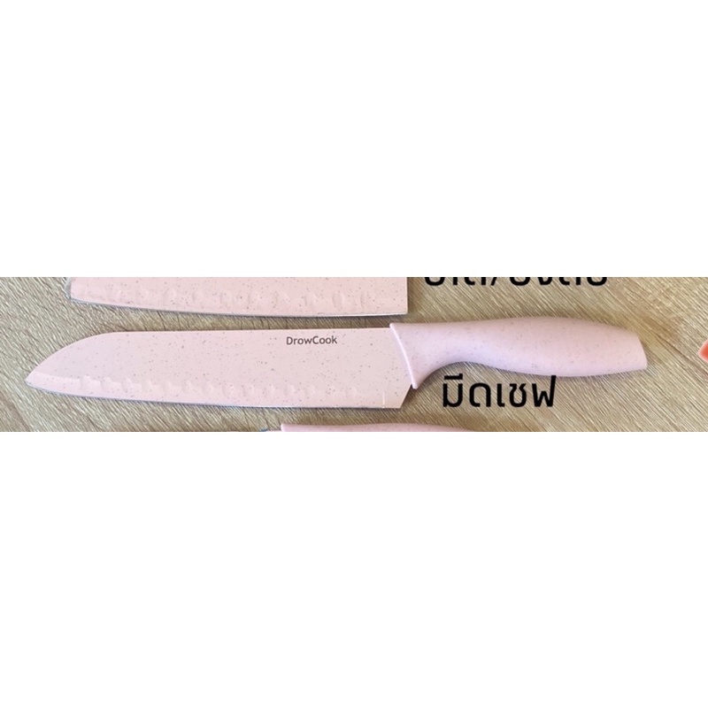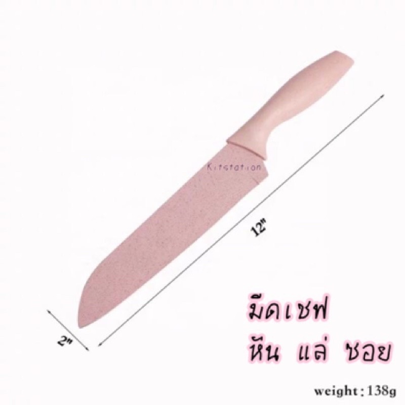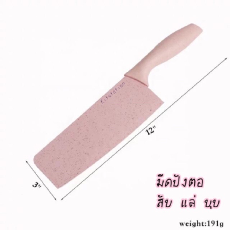[ชุดมีแถม] มีดสแตนเลส ชุดมีดทำครัว 5 ชิ้น สีชมพูพาสเทล เดี่ยว/ชุด