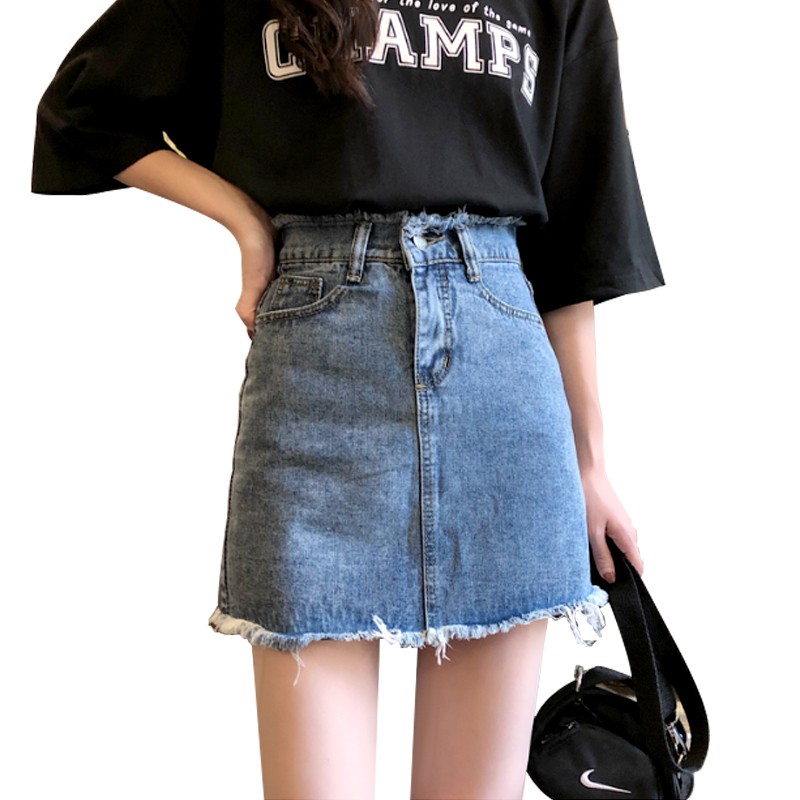 กระโปรงยีนส์ กระโปรงเอวสูงวัยรุ่น ยีนส์ทรงAสไตล์เกาหลี ปลายรุ่ย
