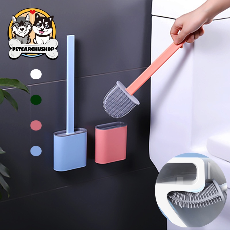 แปรงขัดส้วม ที่ขัดห้องน้ำ ห้องน้ำแปรงซิลิ มีฝาปิด ติดผนัง ไม่มีการเจาะ มี 4 สี มาพร้อมกับรูระบายน้ํา