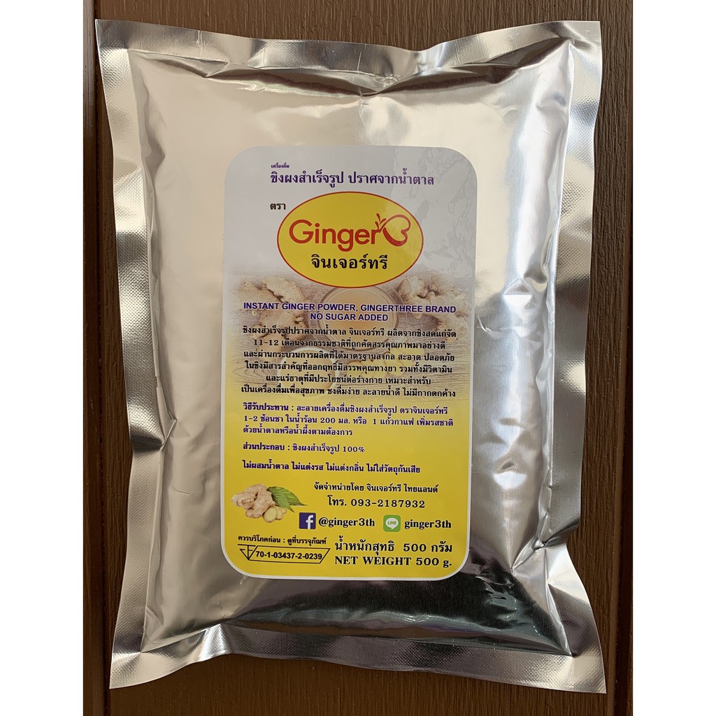 ขิงสกัดผง100% ไม่มีน้ำตาล ขนาด 500 กรัม ตราจินเจอร์ทรี (Ginger3) ละลายดีไม่มีกากตะกอน