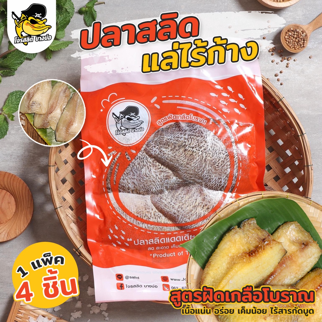 ปลาสลิดแดดเดียวบางบ่อ (สูตรฝัดเกลือโบราณบางบ่อ กว่า 70ปี ) เนื้อแน่น ไม่มีกลิ่นตุ สด สะอาด อร่อย (แบบแ ล่ไร้ก้าง 4 ชิ้น)