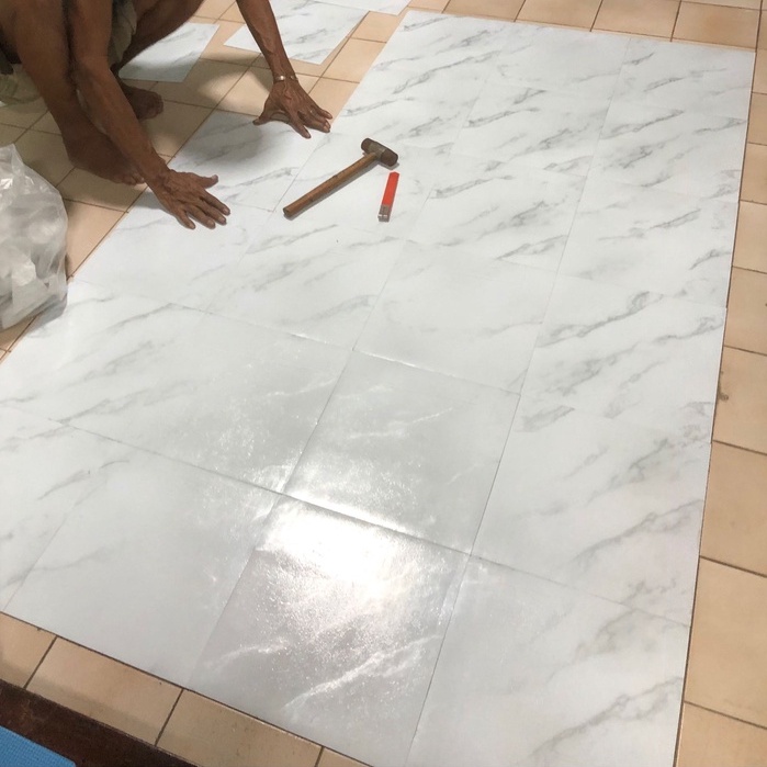🔥 กระเบื้องยางลายหินอ่อน 🔥30*30cm🔥กาวในตัว กระเบื้องติดพื้น ปูพื้นห้องนอน