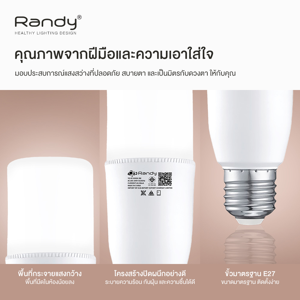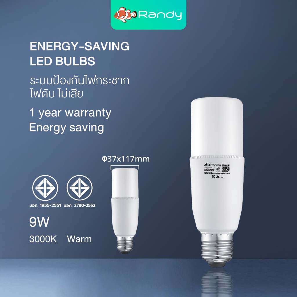 [ซื้อ3FREE1]Randy หลอดไฟLEDBulb 9w 13w ขั้วE27 ไฟ led รับประกัน1ปี LEDLAMP สินค้าชำรุดเปลี่ยนชิ้นใหม่ฟรี