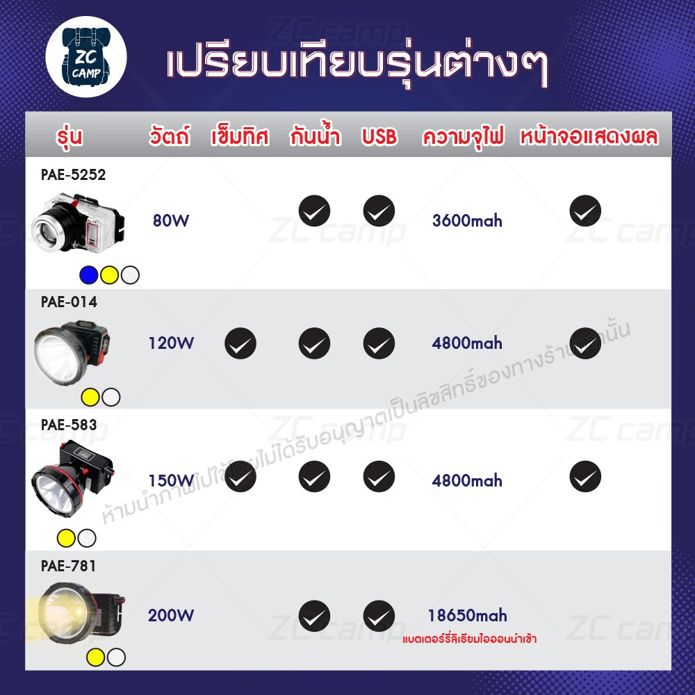 ✨ลูกค้า ใหม่ 1 ฿✨ ZC ไฟฉายคาดหัว ไฟฉายแรงสูง ไฟส่องกบ Led ไฟคาดหัว ไฟคาดหัวกันน้ำ แข็งแรง ทนทาน