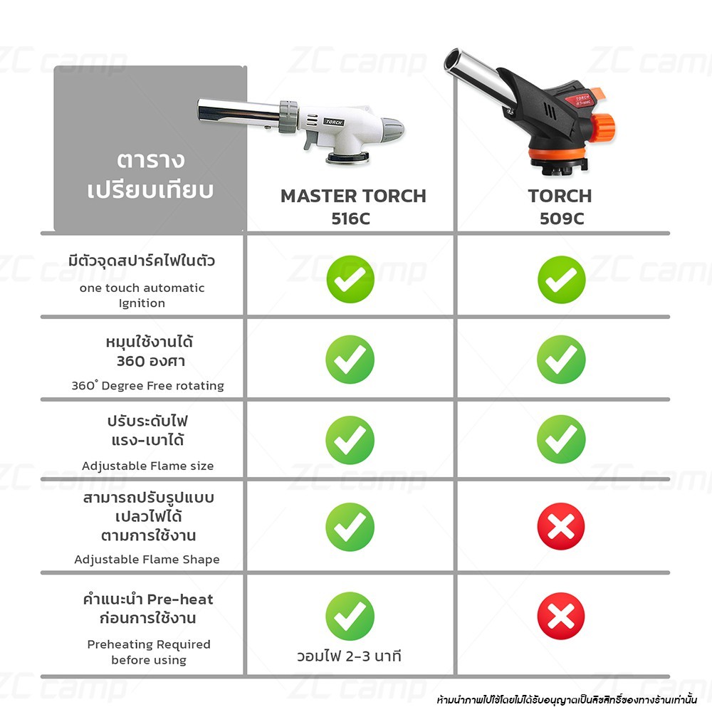 ✨ลูกค้าใหม่ 1 ฿✨ ของแท้!! ZC CAMP หัวแก๊สกระป๋อง หัวพ่นไฟ หัวพ่นแก๊ส MASTER TORCH ที่จุดไฟ ร้อนสูง 1300 องศา