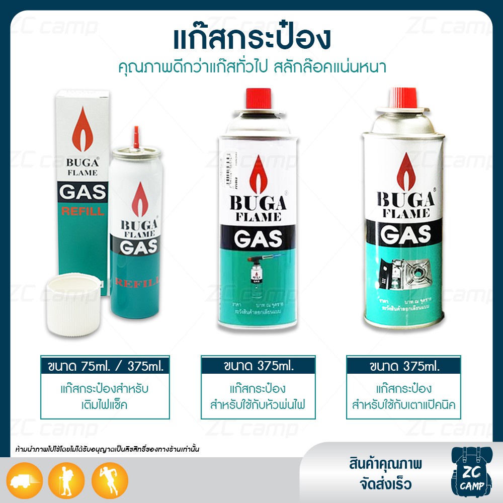เเพ็คดี พร้อมส่ง ZC CAMP แก๊สกระป๋อง แก๊ซกระป๋อง กระป๋องแก๊ส buga gas มี 3 ประเภท แก๊สปิคนิค แก๊สเติมไฟแช็ค