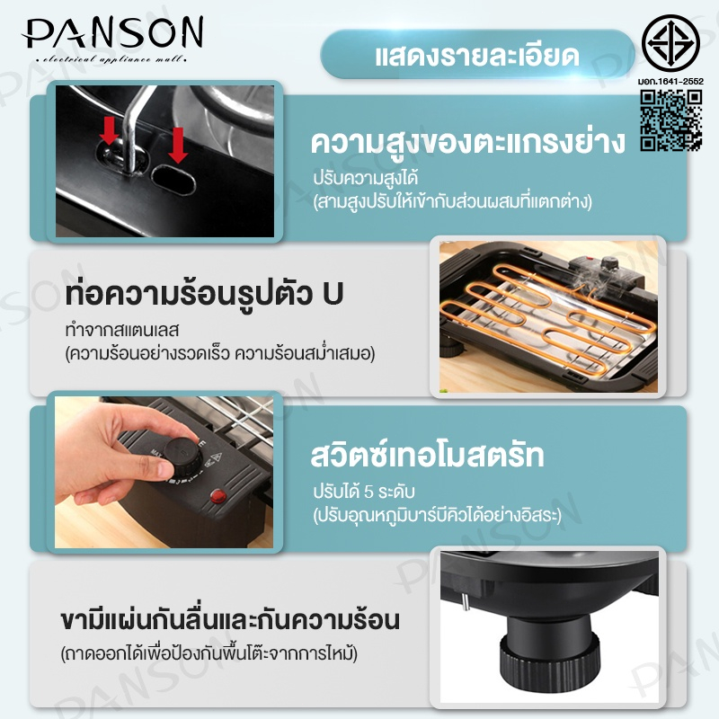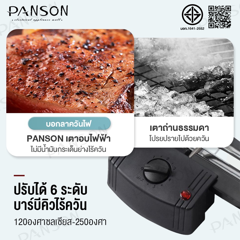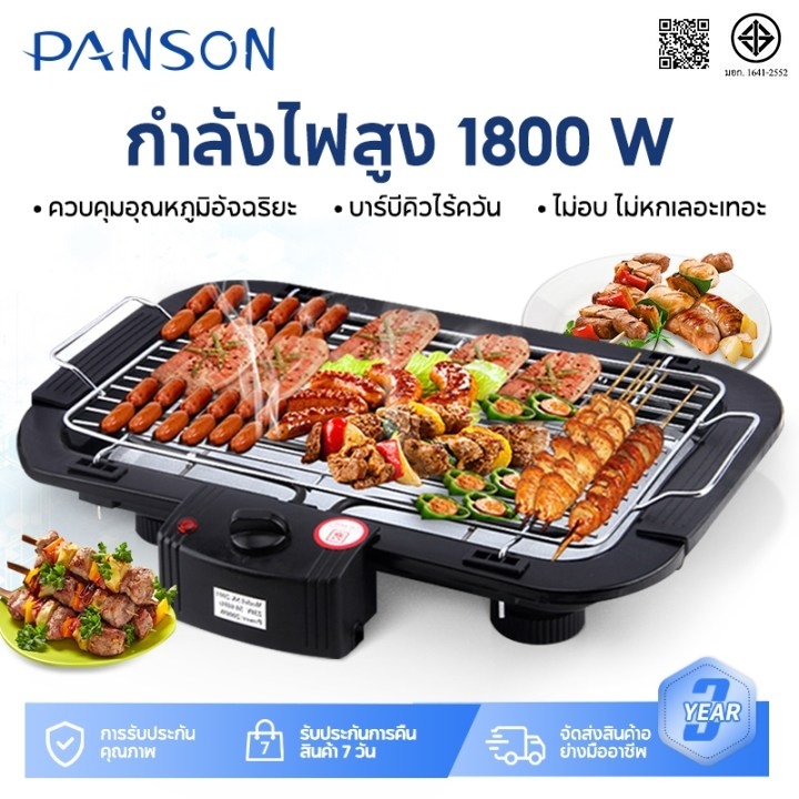 Panson เตาย่างไฟฟ้า เตาย่างบาร์บีคิว 1800W เตาปิ้งย่างไฟฟ้าไร้ควัน