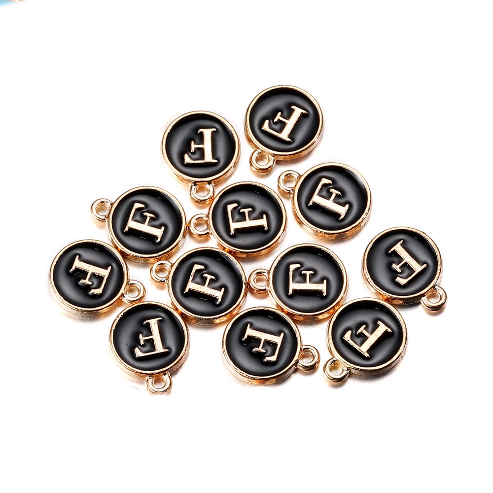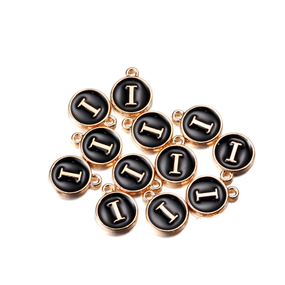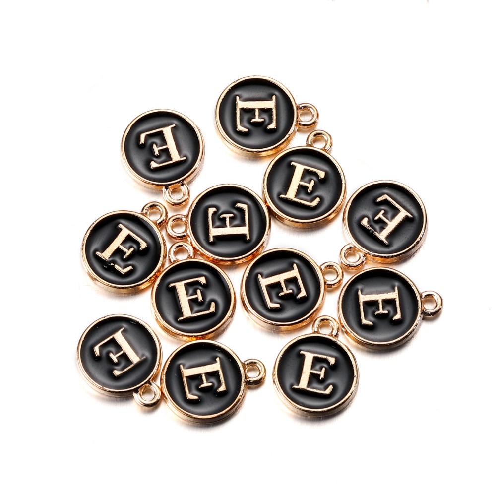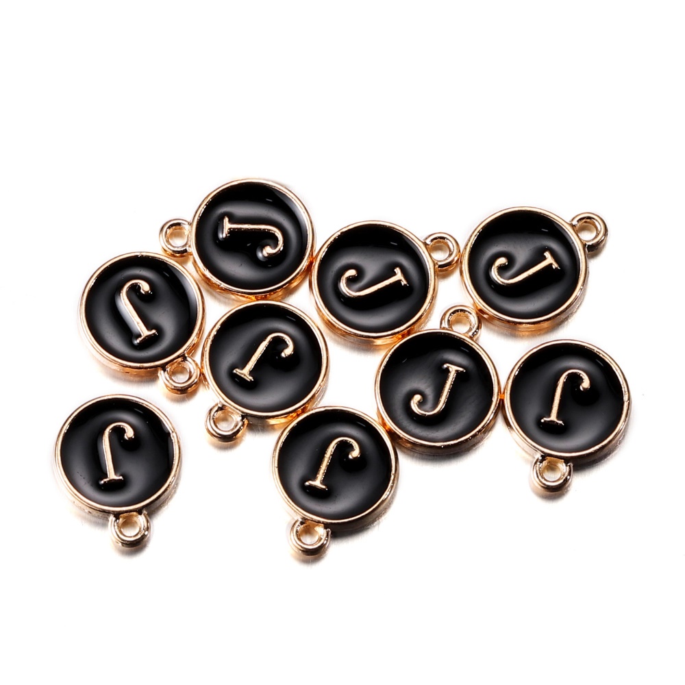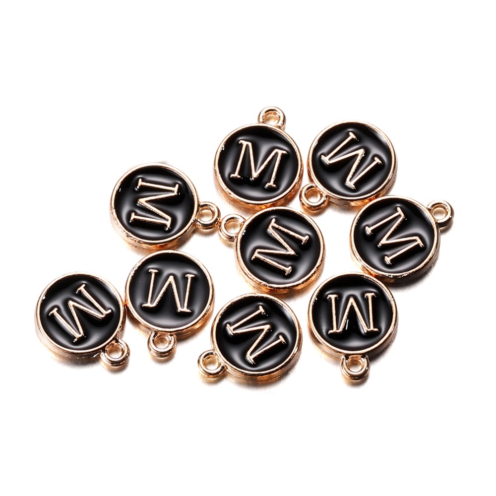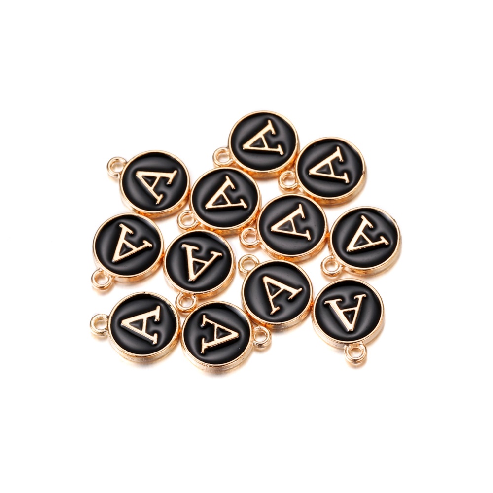 จี้ตัวอักษร สีดํา 12 มม. สําหรับทําเครื่องประดับ สร้อยคอ สร้อยข้อมือ DIY 1 ชิ้น