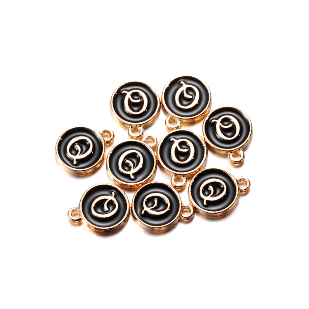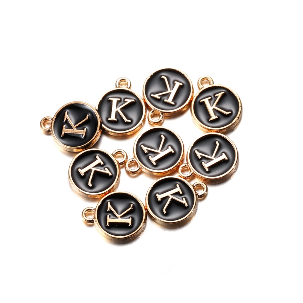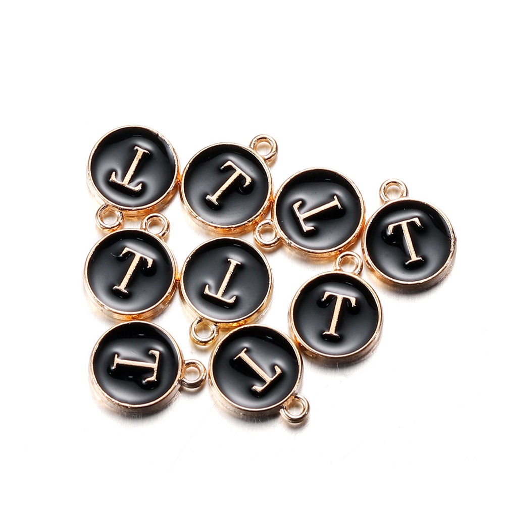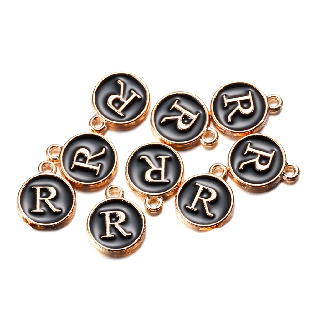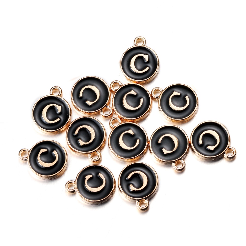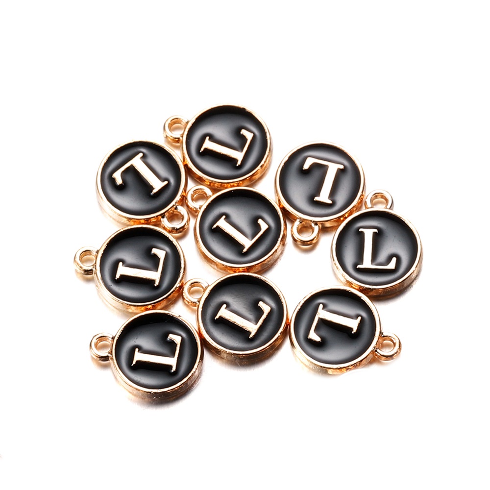 จี้ตัวอักษร สีดํา 12 มม. สําหรับทําเครื่องประดับ สร้อยคอ สร้อยข้อมือ DIY 1 ชิ้น