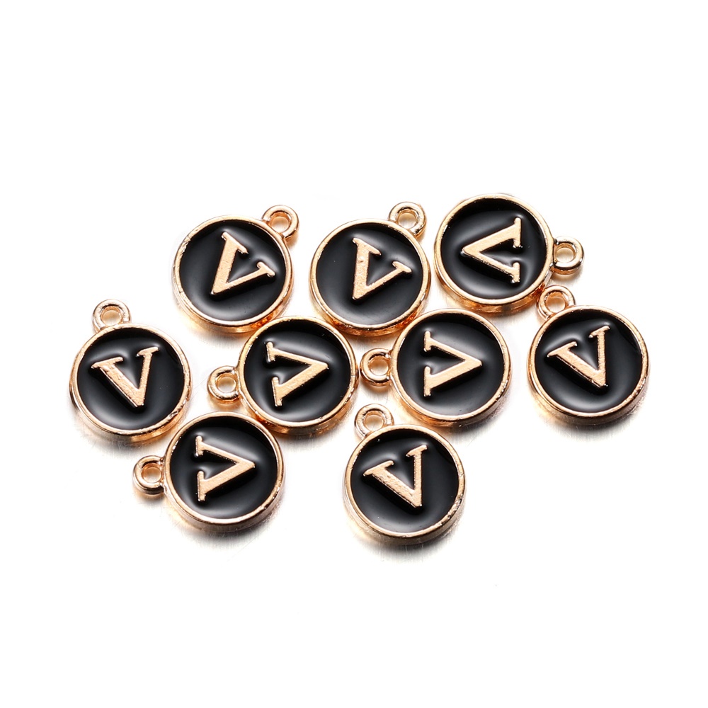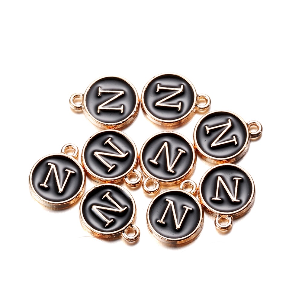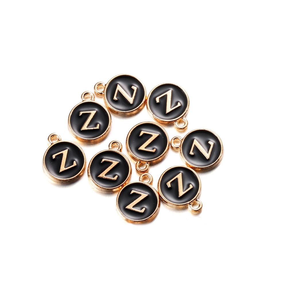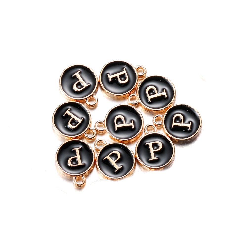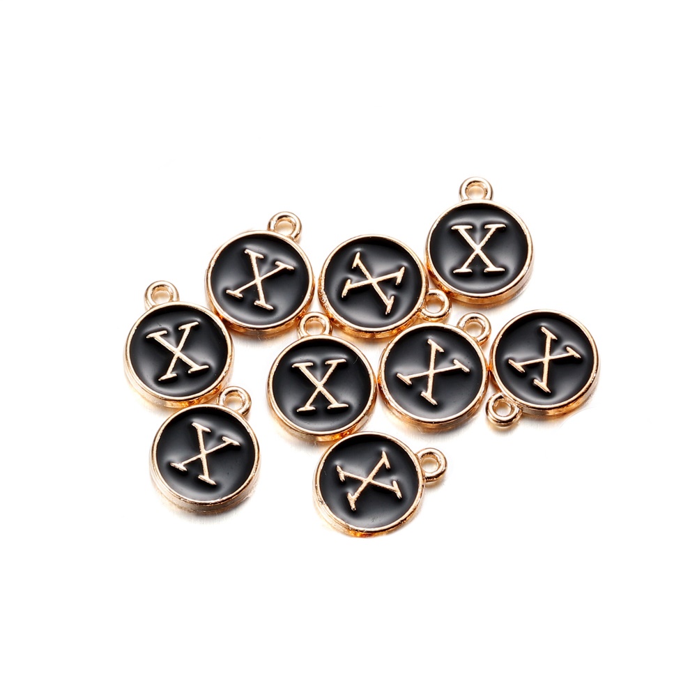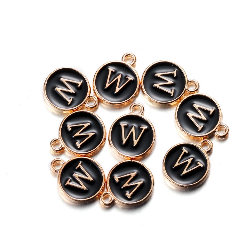 จี้ตัวอักษร สีดํา 12 มม. สําหรับทําเครื่องประดับ สร้อยคอ สร้อยข้อมือ DIY 1 ชิ้น