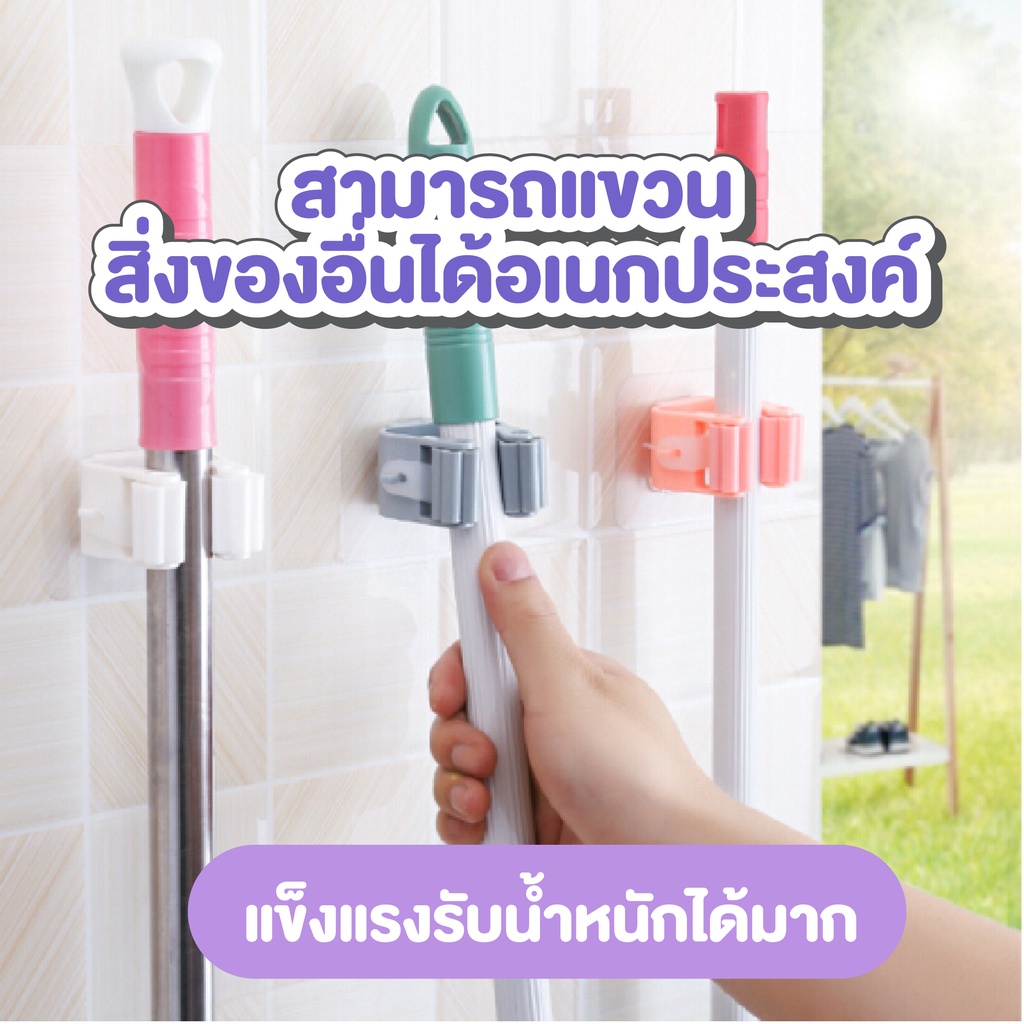 ตะขอล๊อคไม้กวาด ไม้ถูพื้น ติดผนัง ไม่ต้องเจาะรู SP016
