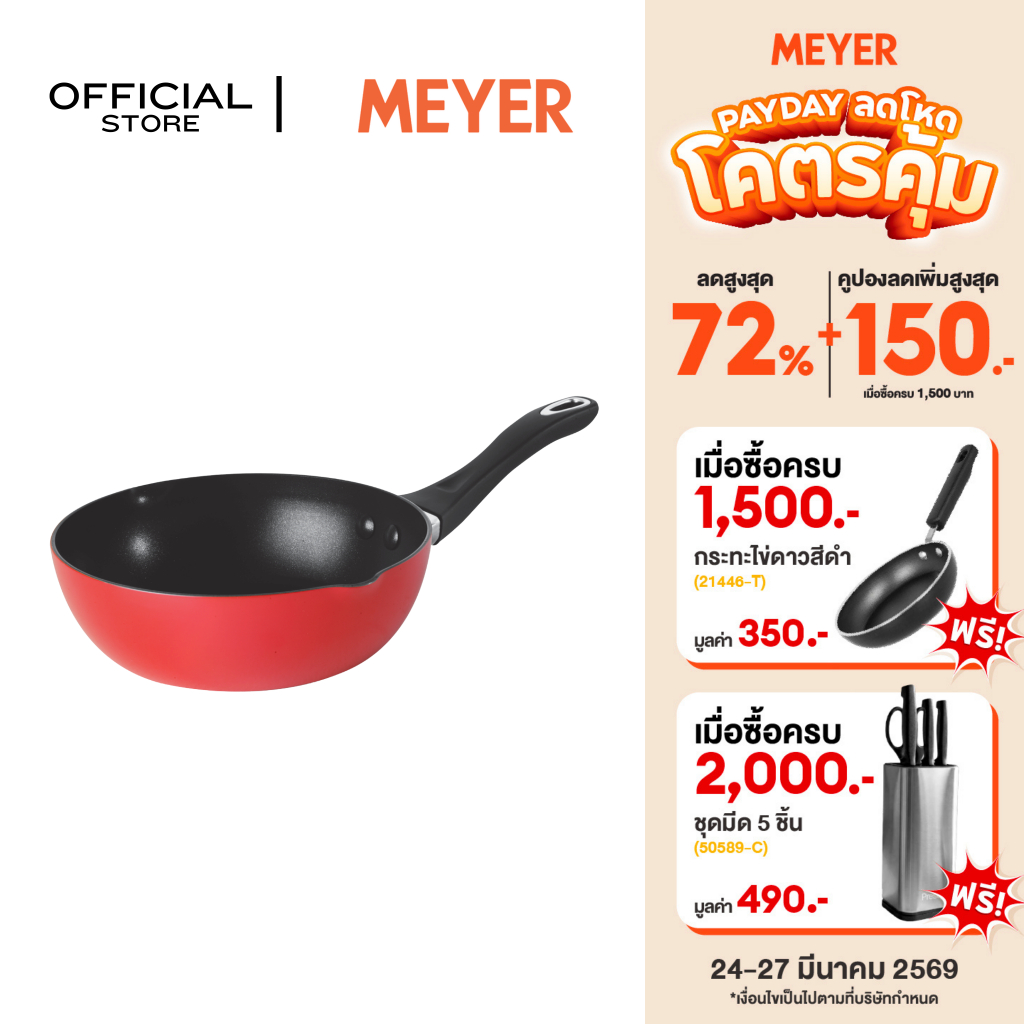 Meyer รุ่น Cooking for me กระทะทอดไข่ กระทะทรงลึก ขนาด 20 ซม. Deep Frypan with Spouts สีแดง (12681-T)