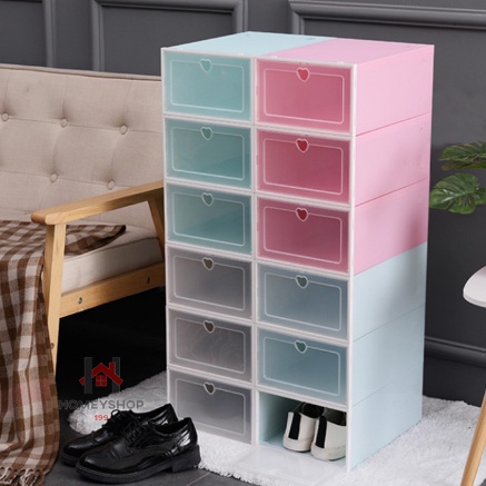 Productiveshop327 กล่องใส่รองเท้า ฝารูปวงกลม ต่อได้หลายชั้น มี2ขนาด มีวิดีโอสอนประกอบ pd99