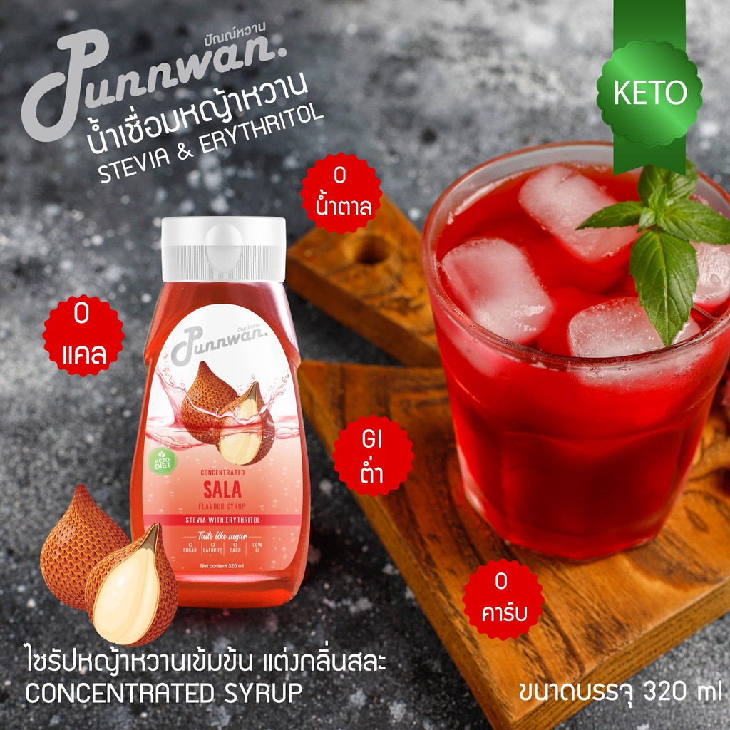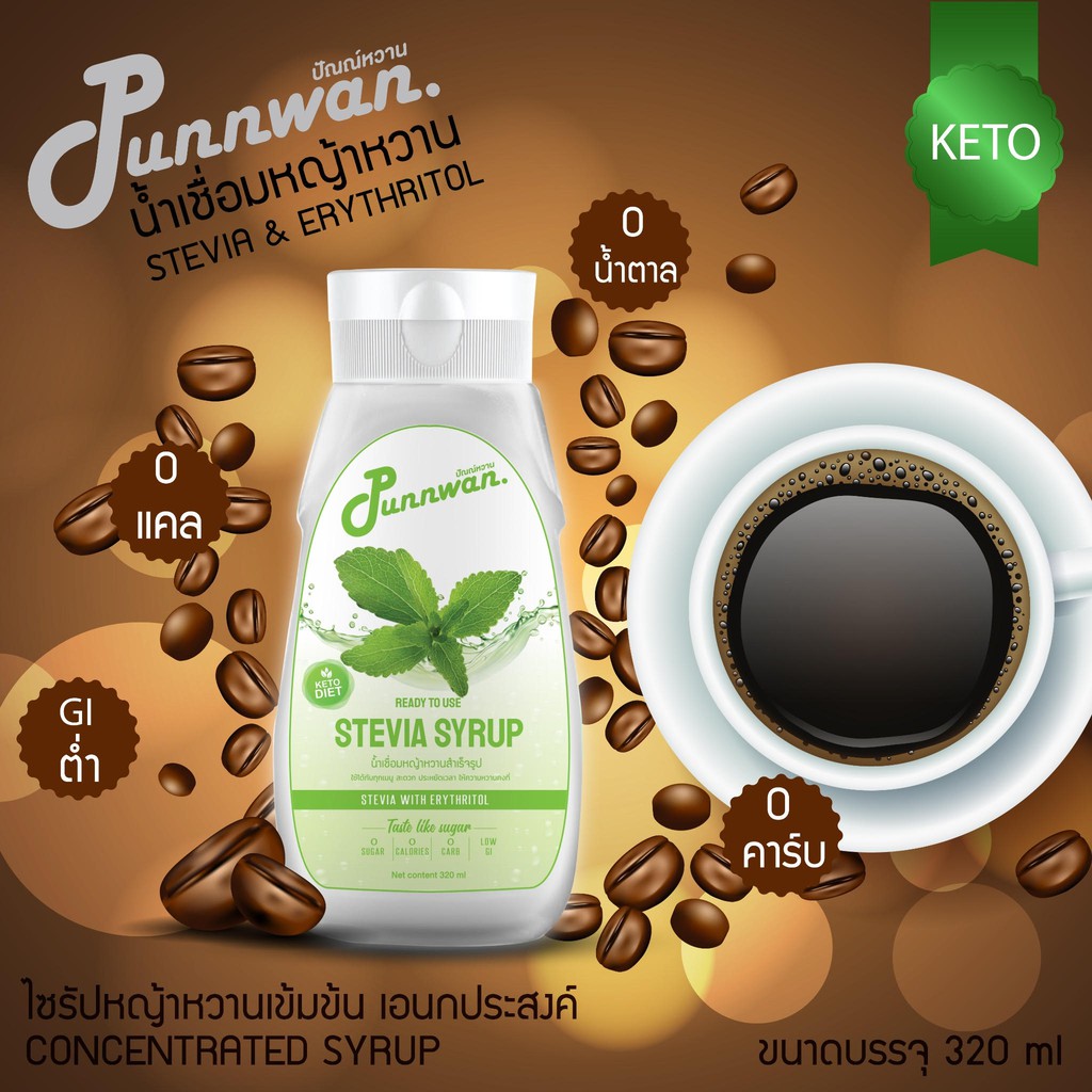 🎈ขนาดทดลอง 35ml🎈Punnwan ไซรัปหญ้าหวาน ไซรัปคีโต