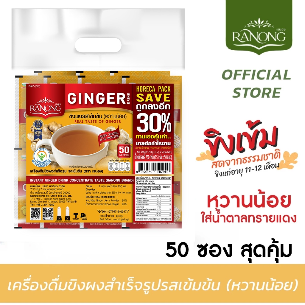 [🔥รวมทุกขนาด] Ranong เรนอง 🌱เครื่องดื่มขิงผงสำเร็จรูปรสเข้มข้น หวานน้อย น้ำขิง ขิงผง ขิงชง น้ำขิงชง