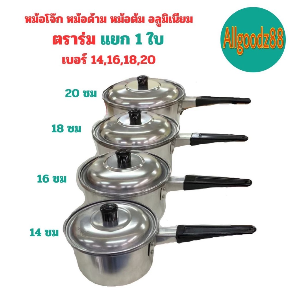 หม้อโจ๊ก หม้อด้ามอลูมิเนียม ตราร่ม เบอร์ 14,16,18,20 ( ขายแยก 1 ใบ )