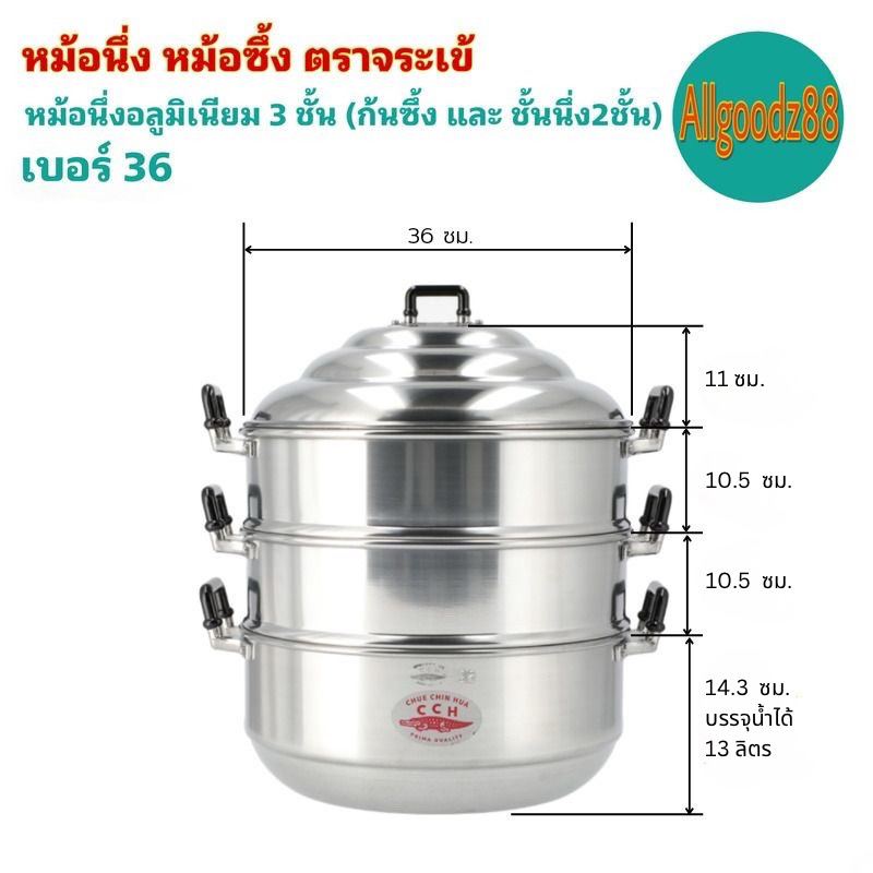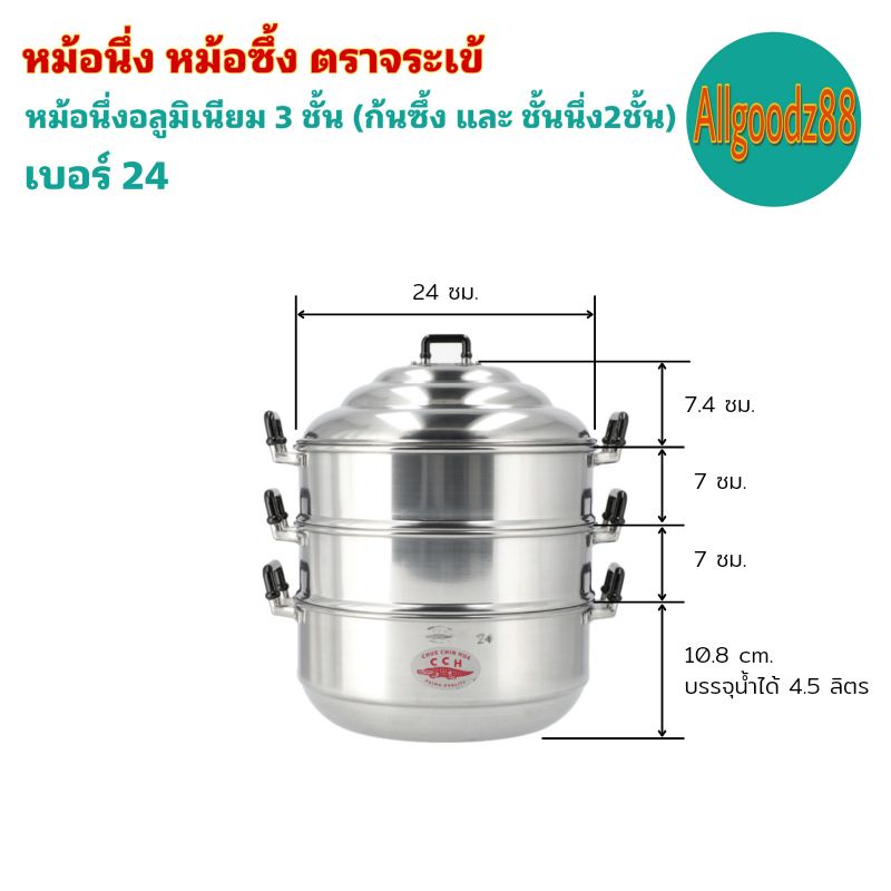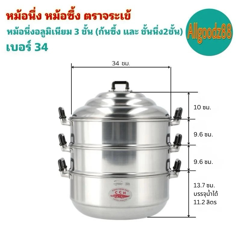 ตราจระเข้ หม้อนึ่ง หม้อซึ้ง อลูมิเนียม 3 ชั้น ( ก้นซึ้ง, ชั้นนึ่ง 2 ชั้น ) ขนาด 24-40 ซม.