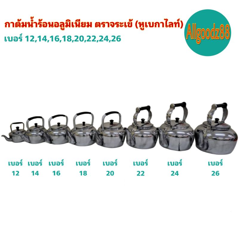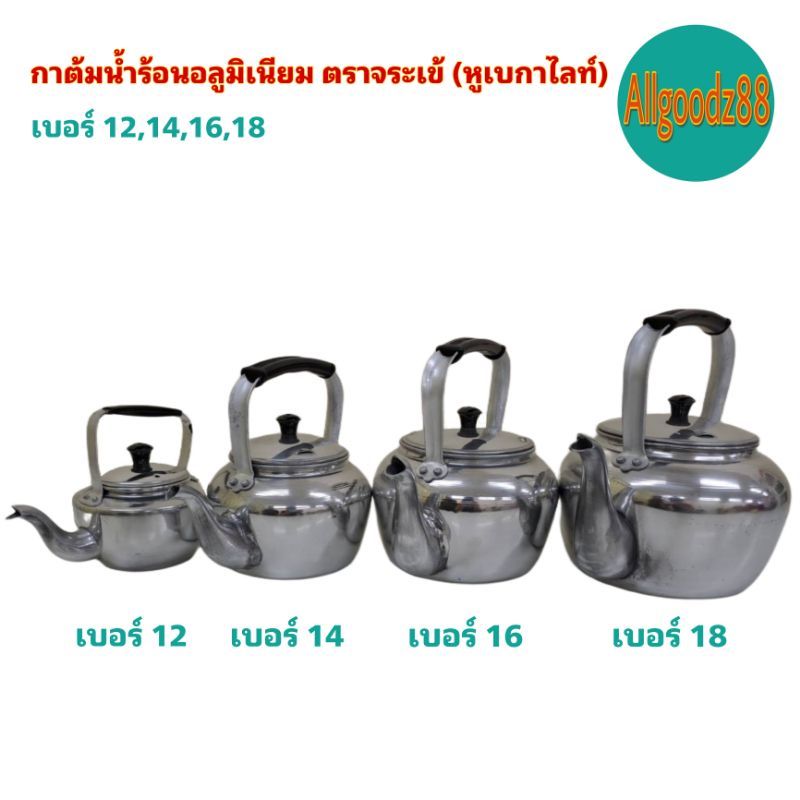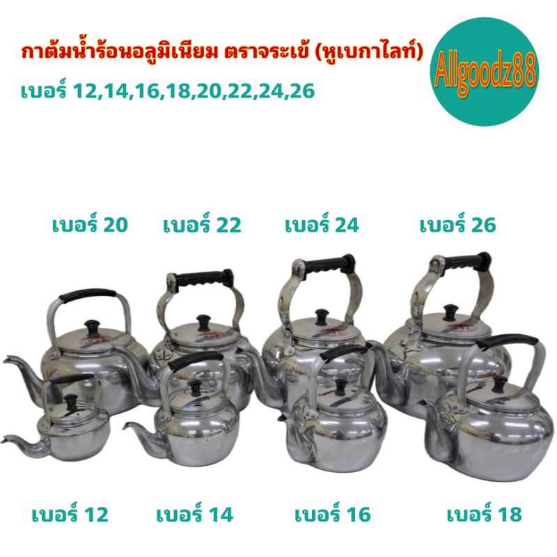 กาต้มน้ำร้อนอลูมิเนียม ตราจระเข้ (หูเบกาไลท์) เบอร์ 12,14,16,18,20,22,24,26