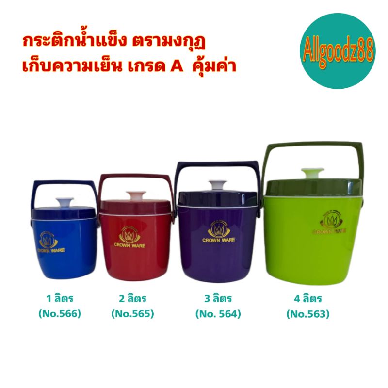 กระติกน้ำแข็ง เก็บความเย็น เกรด A คุ้มค่า ตรามงกุฏ ความจุ 1,2,3,4 ลิตร