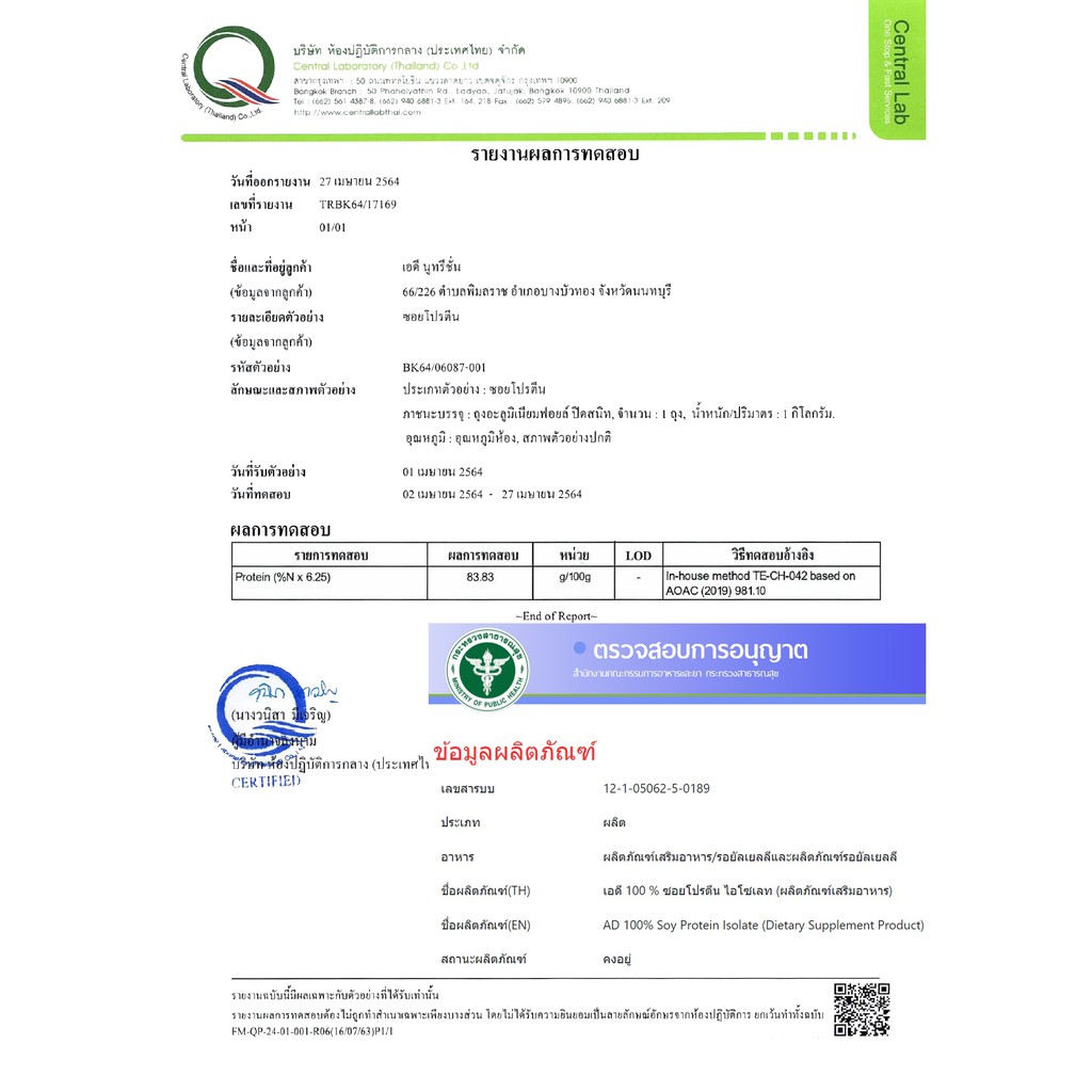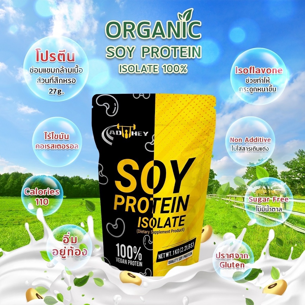 Soy Protein Isolate 2.2 lbs สูตรเจ ซอยโปรตีนไอโซเลท ขนาด 1000 กรัม ลดไขมัน เพิ่มกล้ามเนื้อ อิ่มท้อง