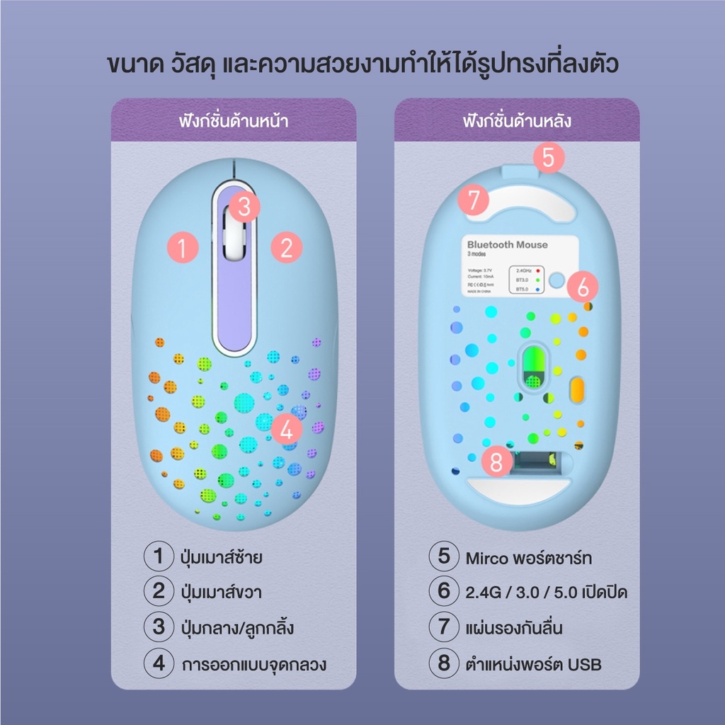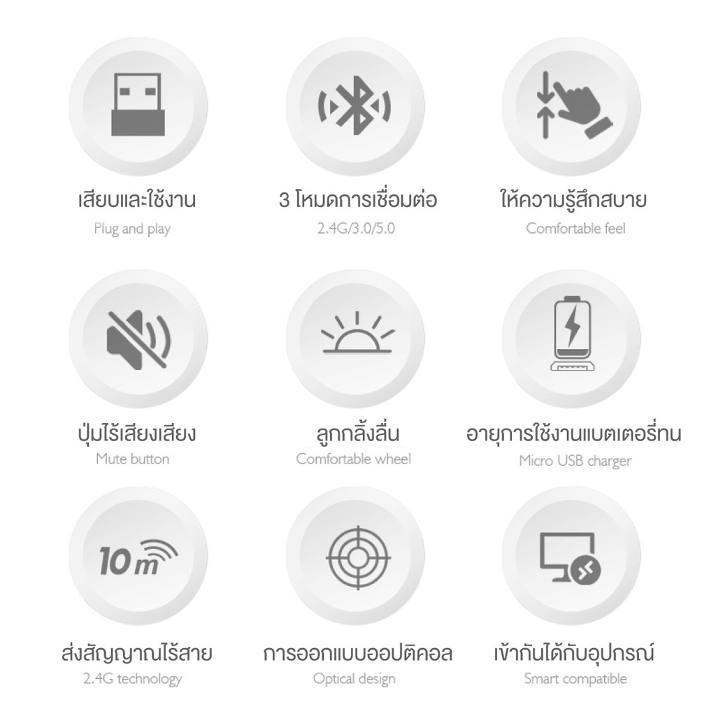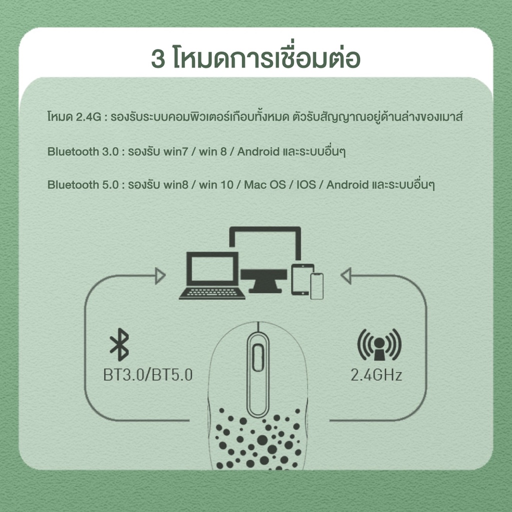 เม้าส์ไร้สาย IWACHI I2 เม้าส์บลูทูธ รองรับ 2.4G BT4.0/BT5.0 ไร้เสียงรบกวน แบตเตอรี่ในตัว 500mAh