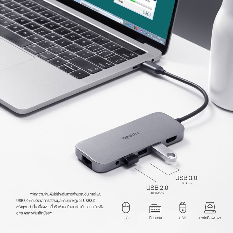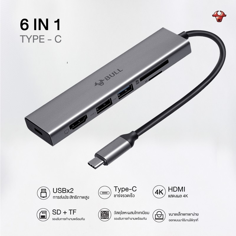 USB C Hub GONGNIU Adaptor Hub อะเเดปเตอร์ พอร์ตฮับ 6in1 HDMI 4K USB 3.0 PD ช่องชาร์จ สำหรับแล็ปท็อป