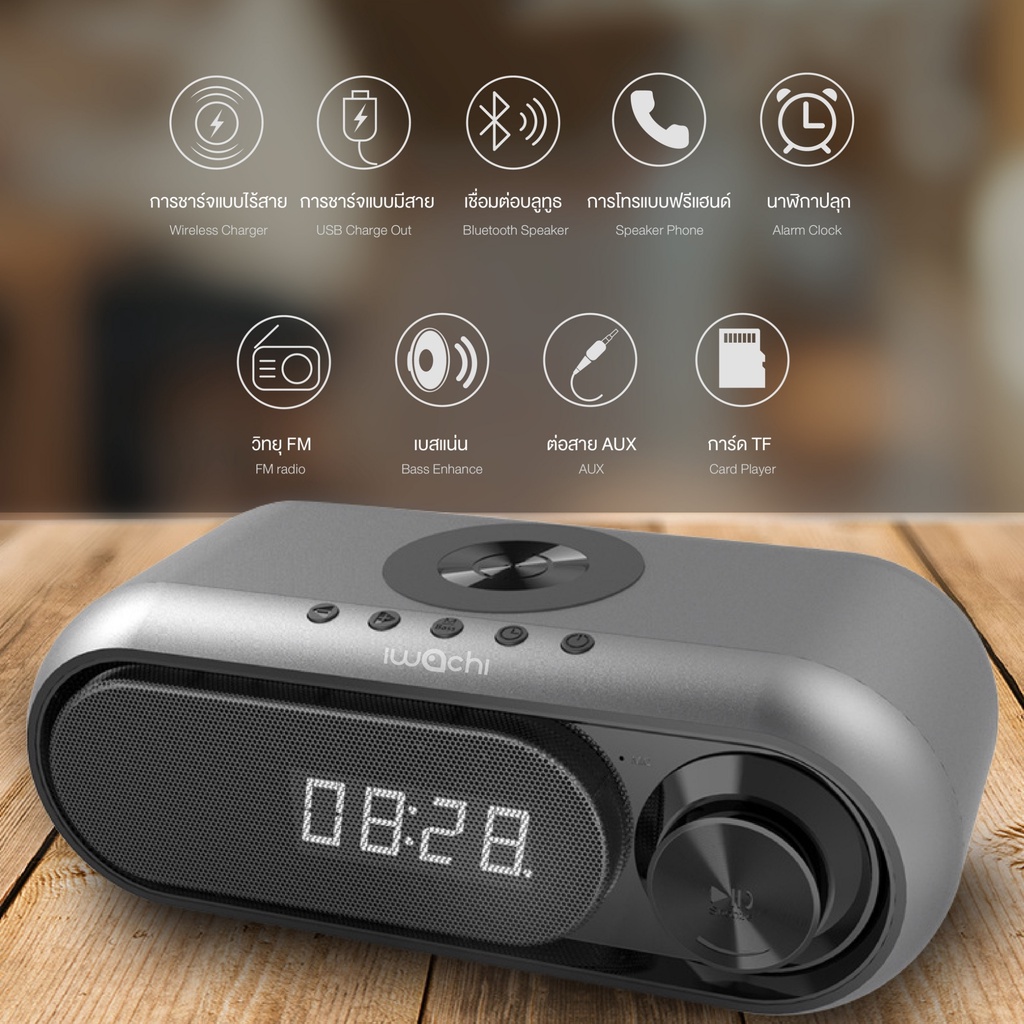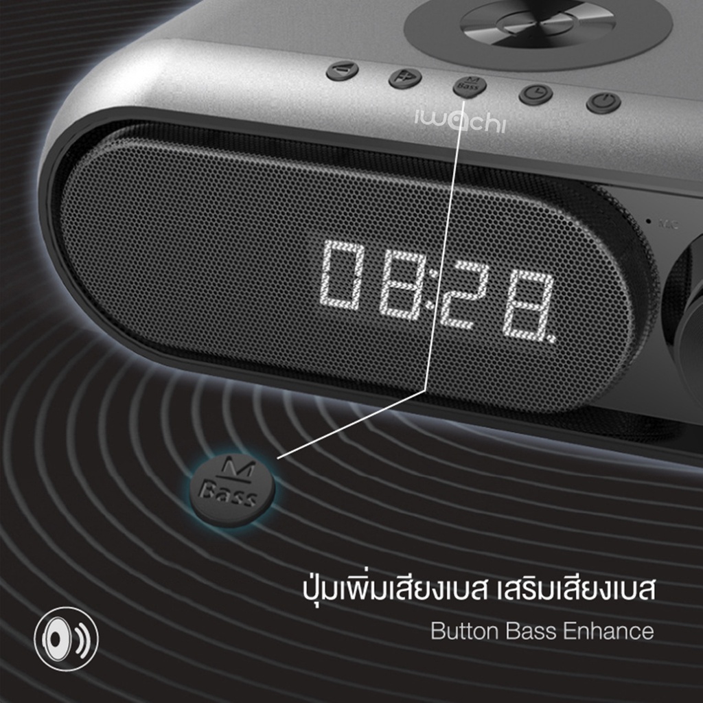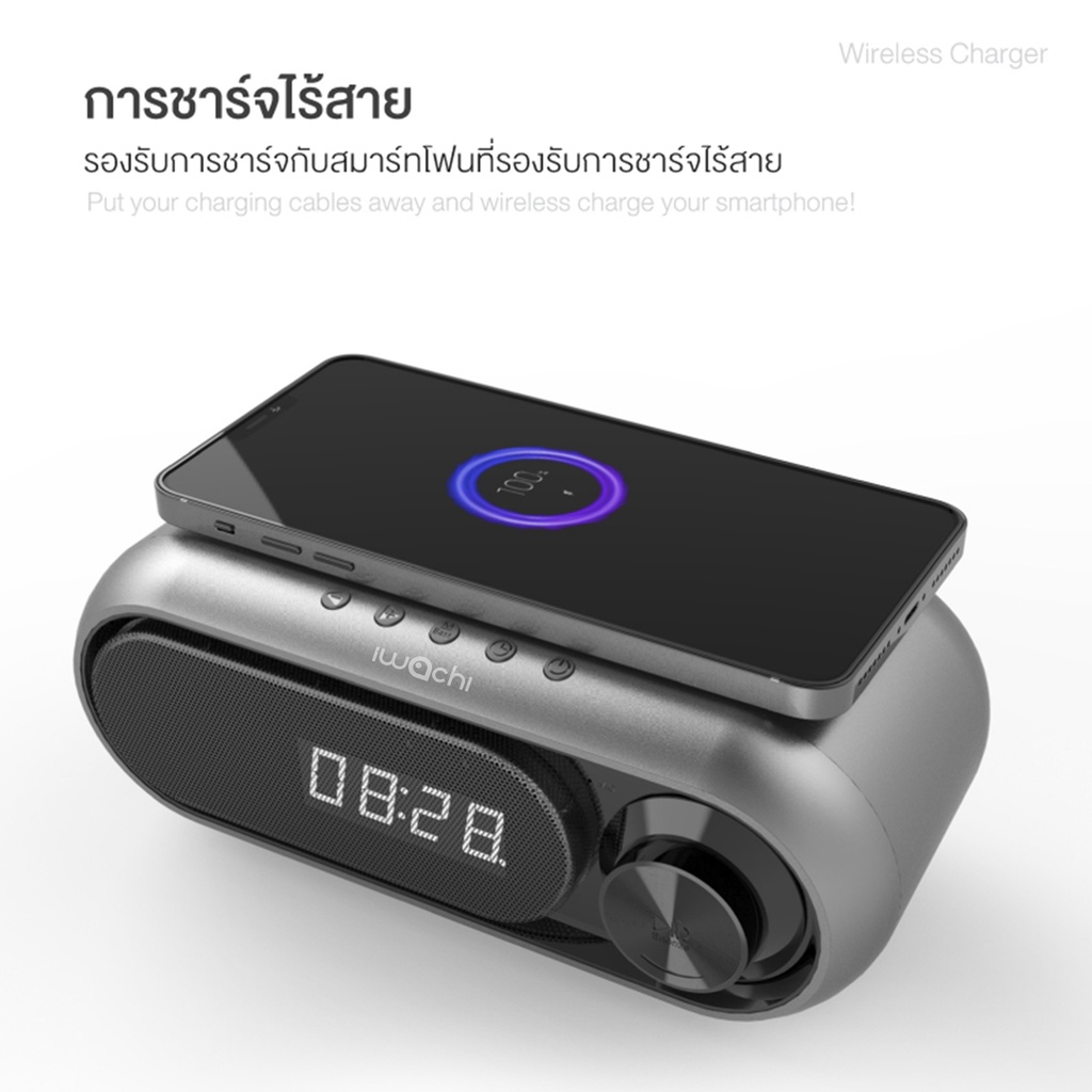 ลำโพงบลูทูธ IWACHI Bluetooth Speaker พร้อมแท ่นชาร์จไร้สาย ฟังก์ชั่นนาฬิกาปลุก รองรับหลายการเชื่อมต่อ