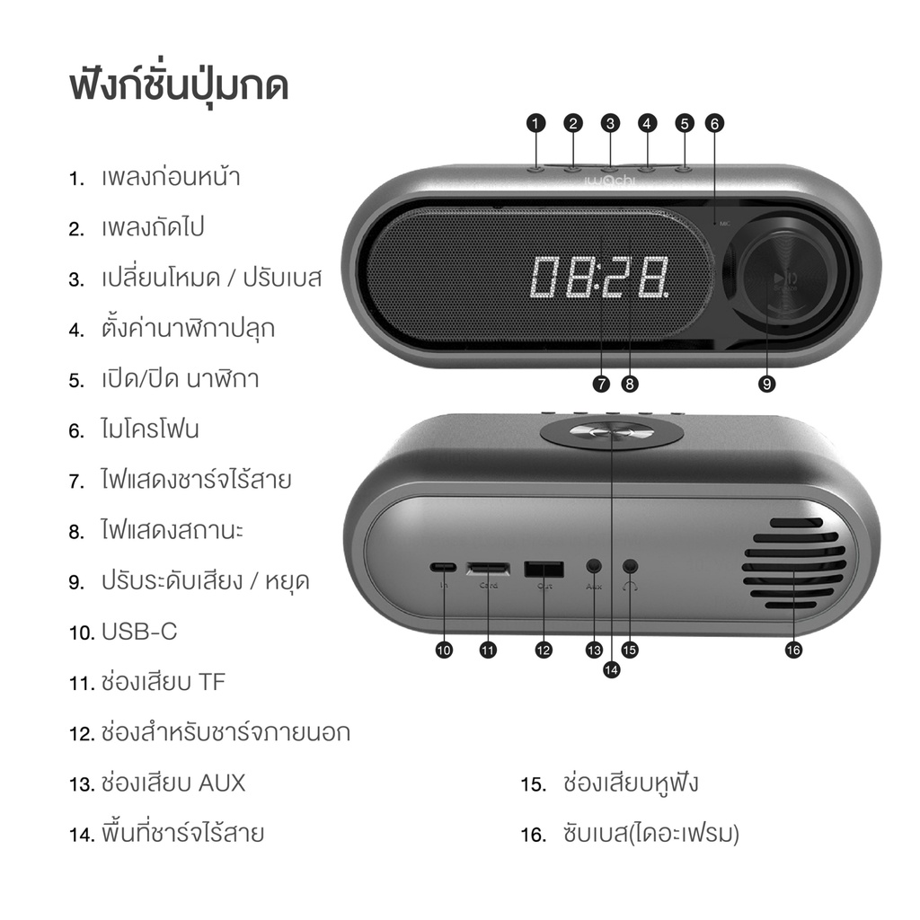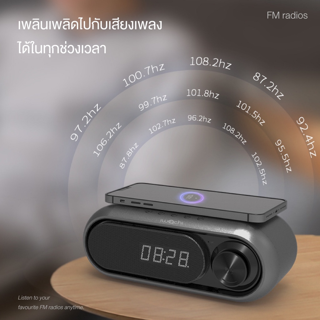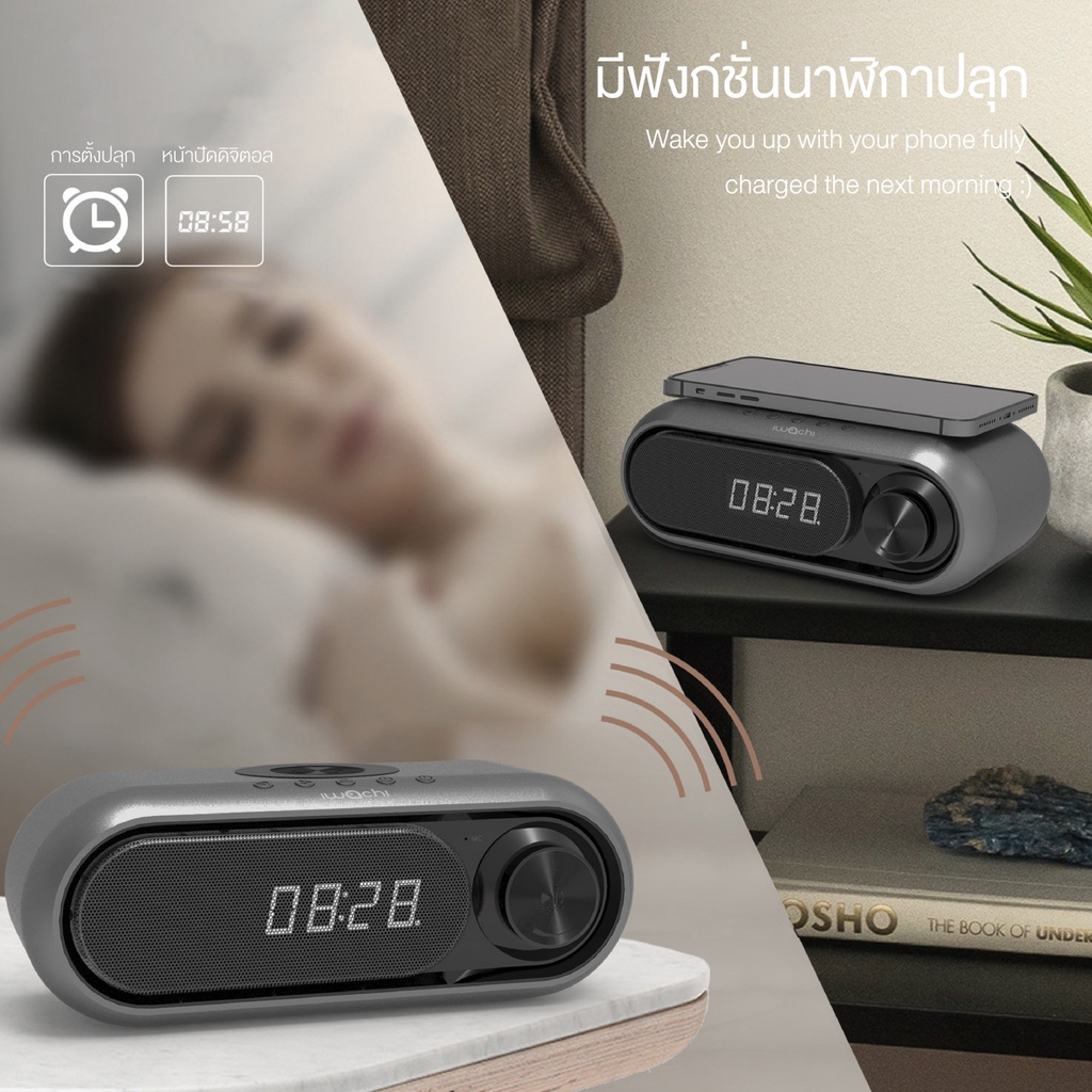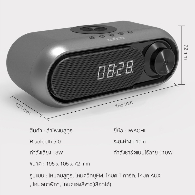 ลำโพงบลูทูธ IWACHI Bluetooth Speaker พร้อมแท ่นชาร์จไร้สาย ฟังก์ชั่นนาฬิกาปลุก รองรับหลายการเชื่อมต่อ